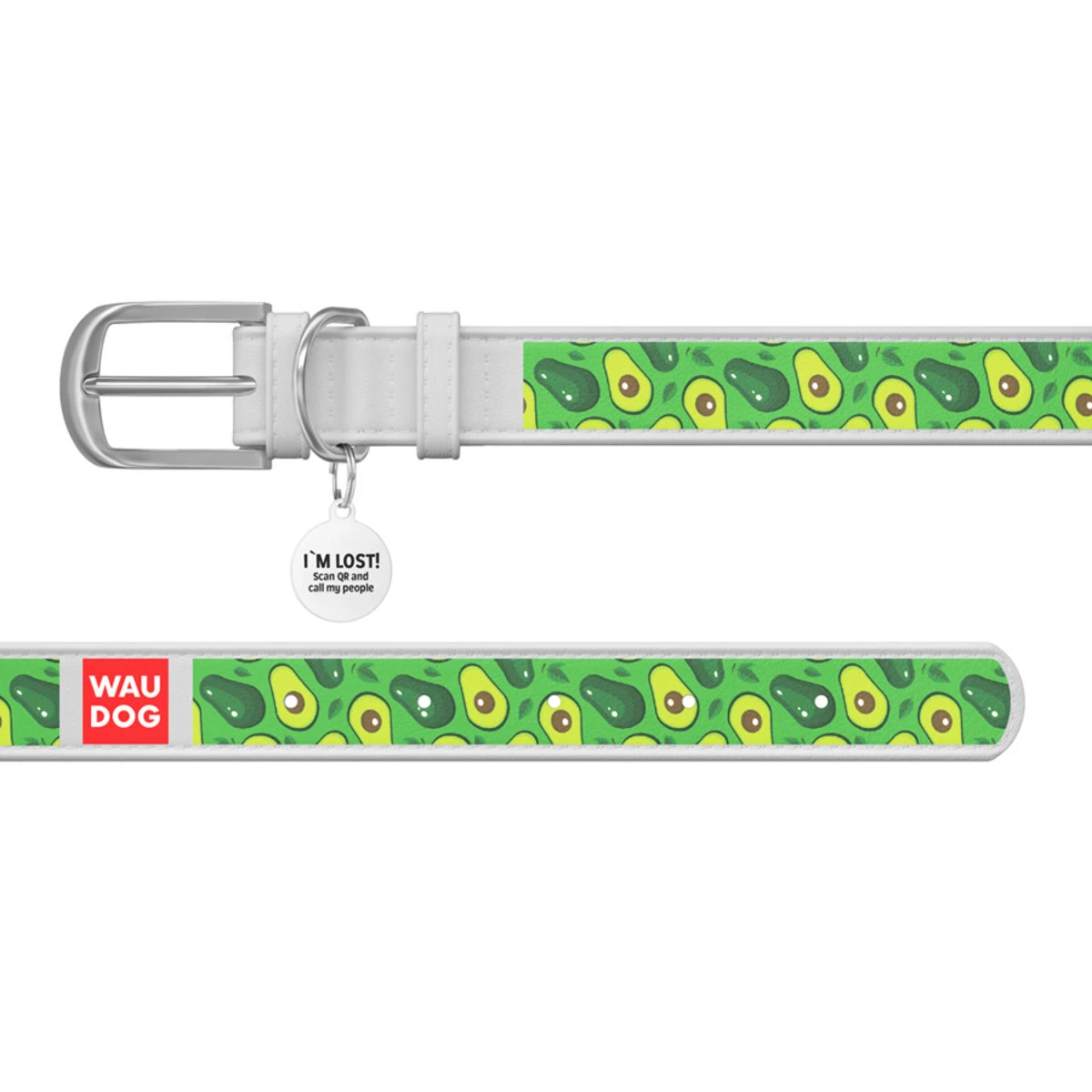Нашийник WAUDOG Design з малюнком "Авокадо", преміум шкіра, металевий пряжка (ширина 15 мм, довжина 27-36 см), білий