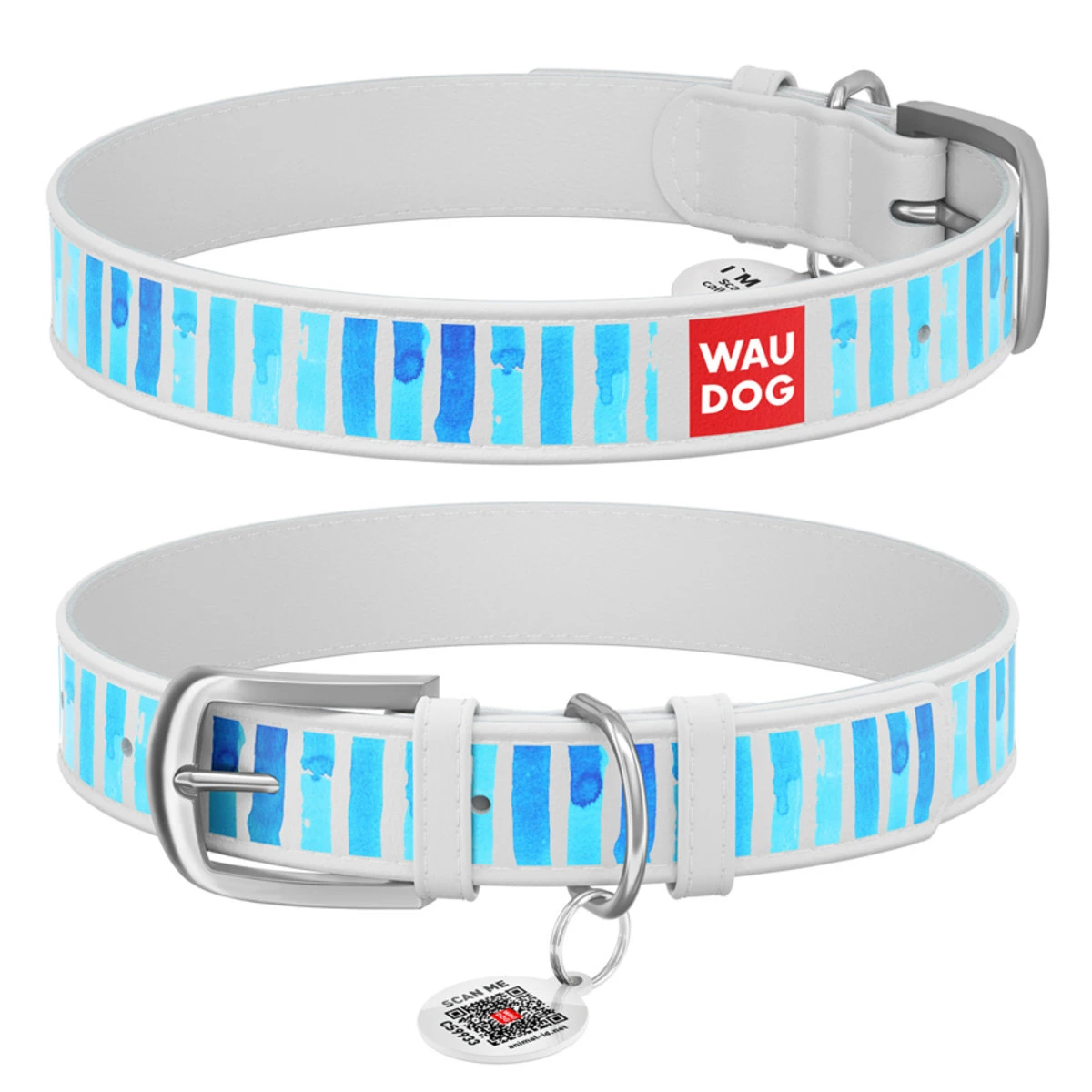 Нашийник WAUDOG Design з малюнком "Блакитні смужки", преміум шкіра, металевий пряжка (ширина 12 мм, довжина 21-29 см), білий