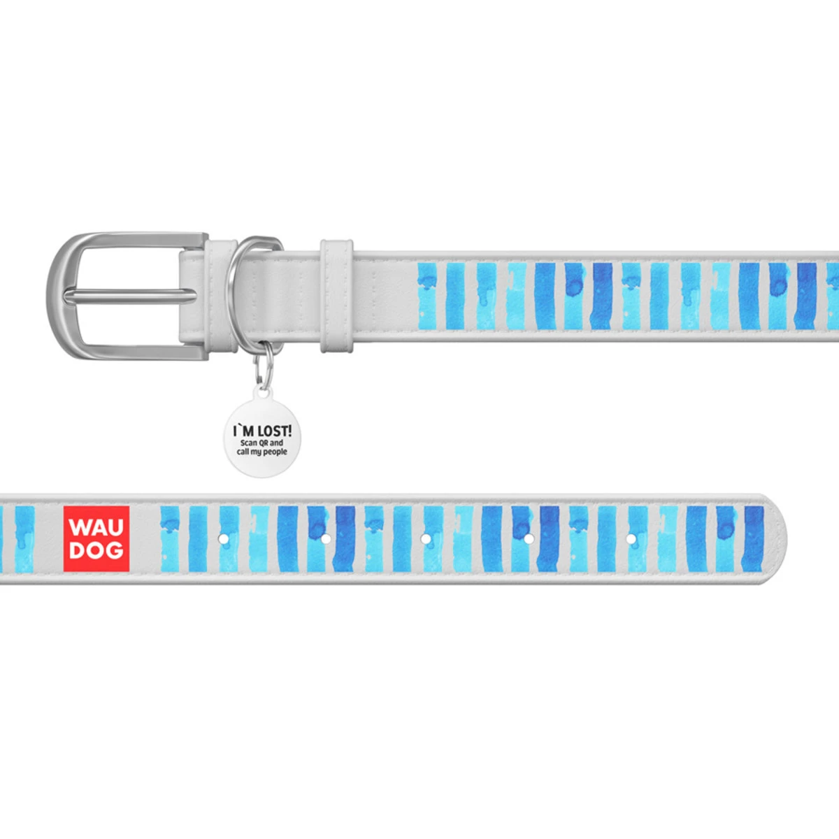 Нашийник WAUDOG Design з малюнком "Блакитні смужки", преміум шкіра, металевий пряжка (ширина 20 мм, довжина 30-39 см), білий
