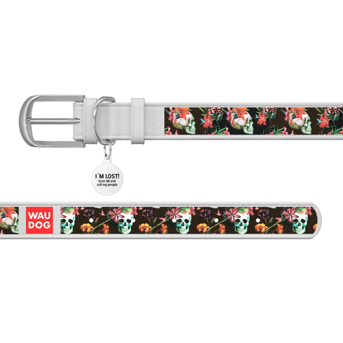 Нашийник WAUDOG Design з малюнком "Черепи", преміум шкіра, металевий пряжка (ширина 35 мм, довжина 46-60 см), білий