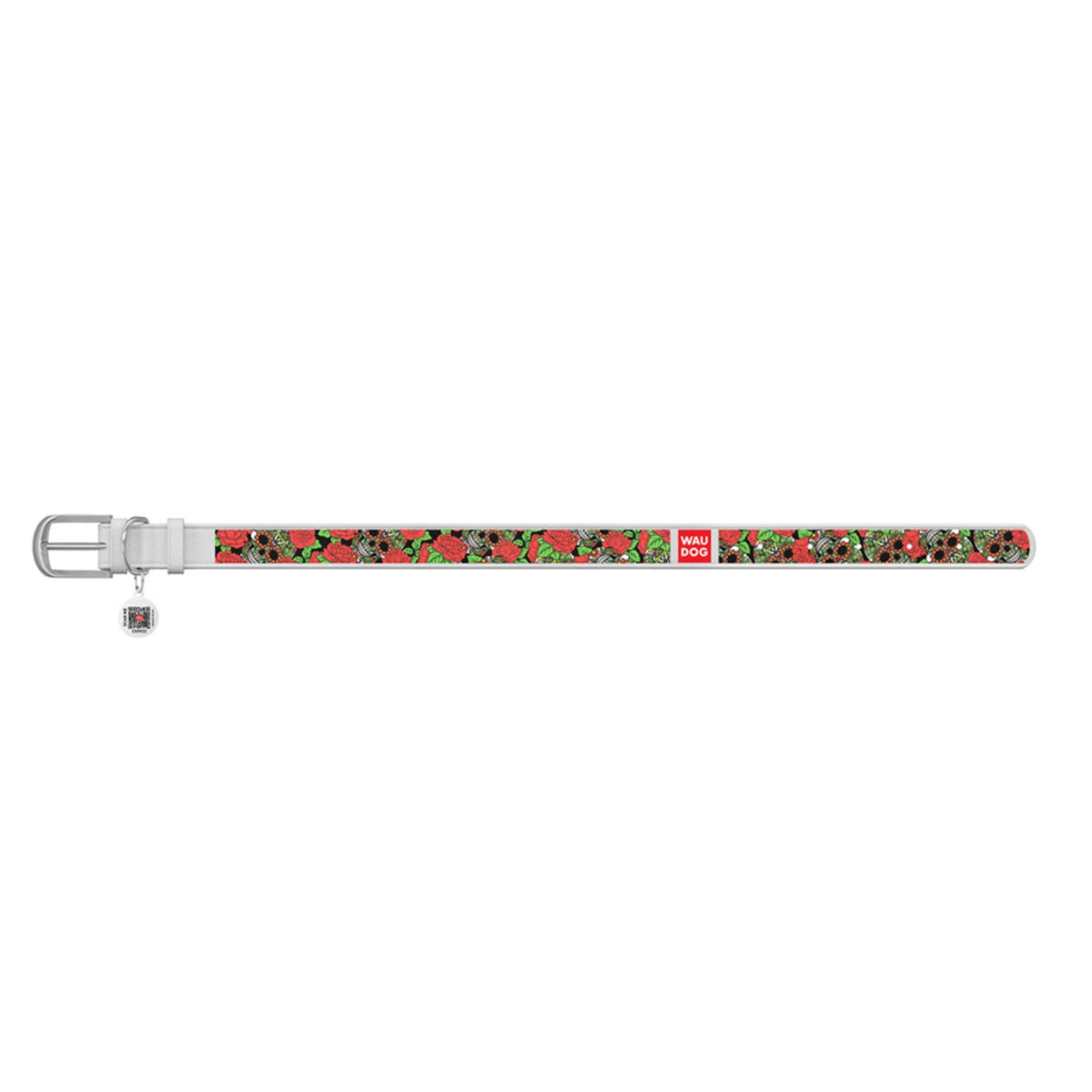 Нашийник WAUDOG Design з малюнком "Черепи та троянди", преміум шкіра, металевий пряжка (ширина 25 мм, довжина 38-49 см), білий
