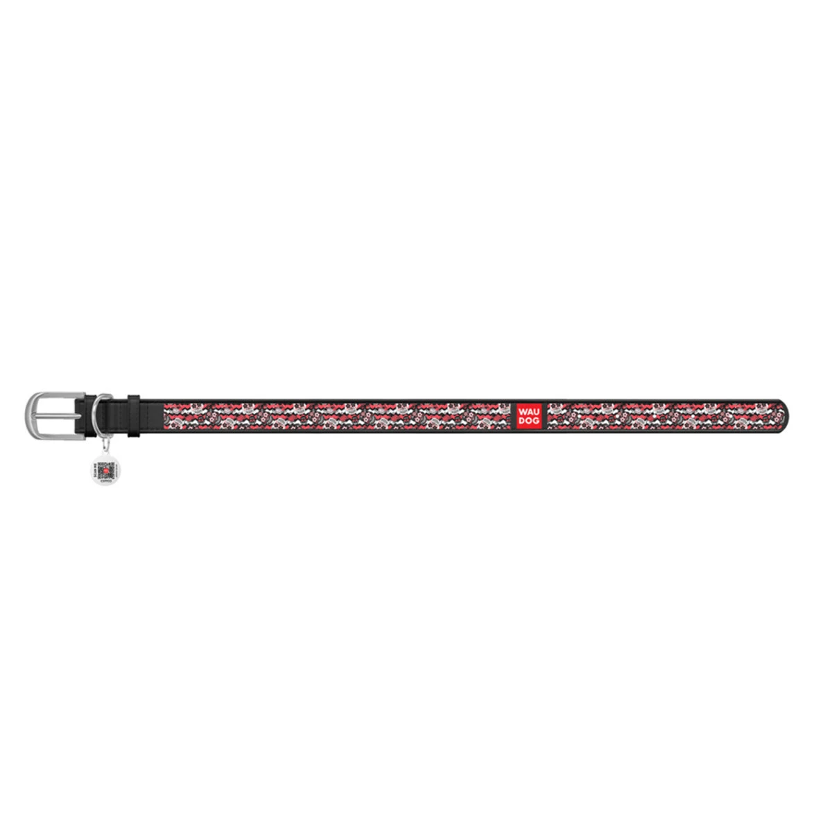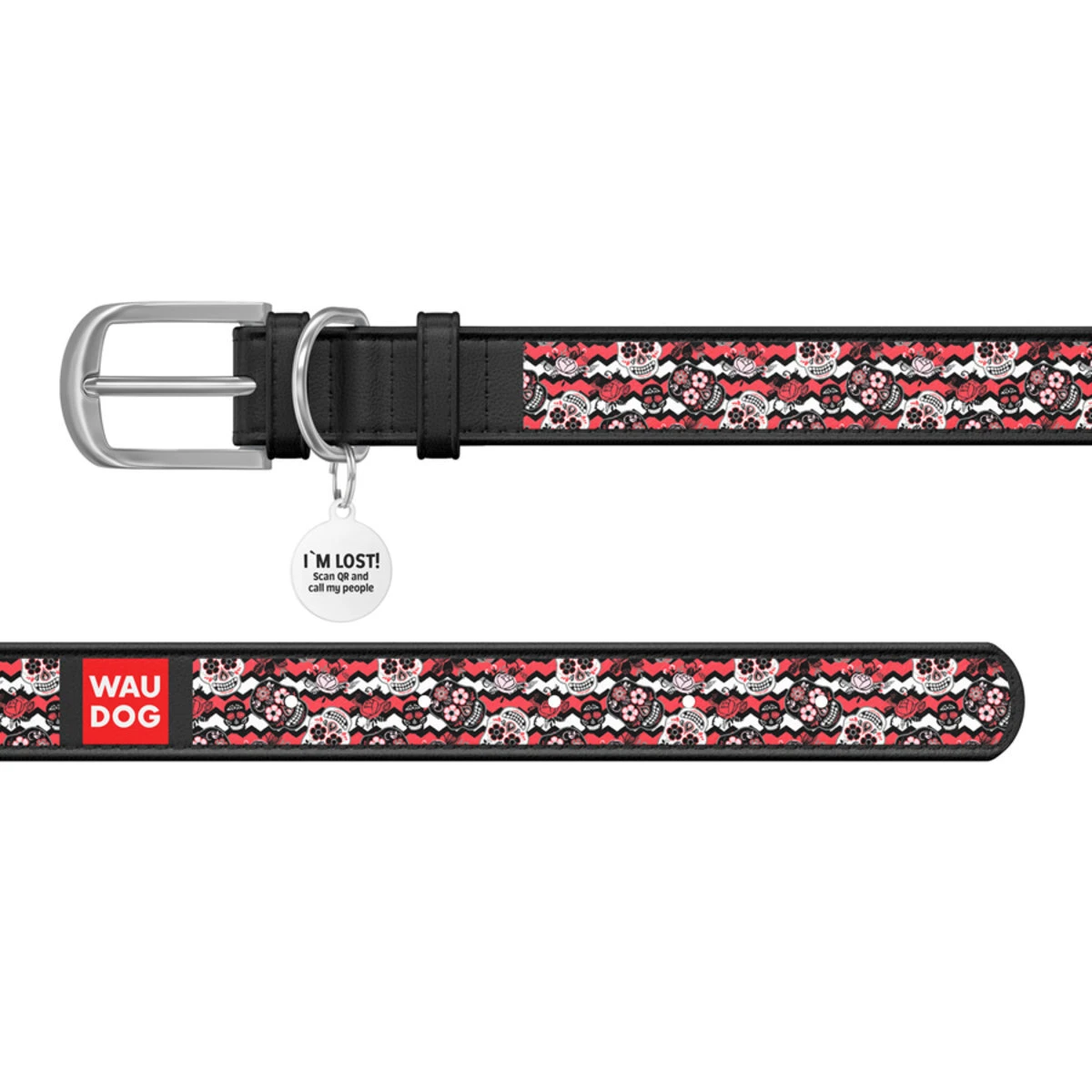 Нашийник WAUDOG Design з малюнком "Цукрові черепи", преміум шкіра, металевий пряжка (ширина 12 мм, довжина 19-25 см), чорний
