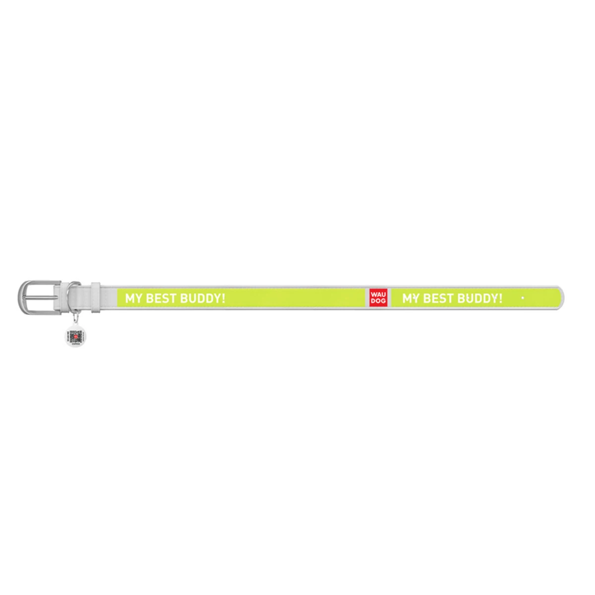 Нашийник WAUDOG Design з малюнком "Друг", преміум шкіра, металевий пряжка (ширина 12 мм, довжина 19-25 см), білий