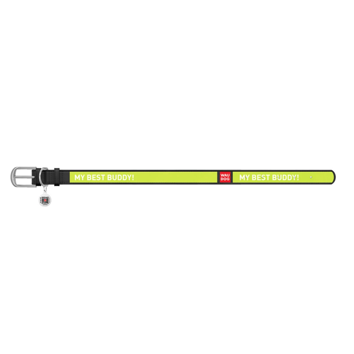 Нашийник WAUDOG Design з малюнком "Друг", преміум шкіра, металевий пряжка (ширина 20 мм, довжина 30-39 см), чорний