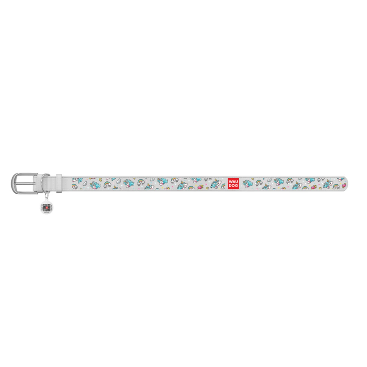 Нашийник WAUDOG Design з малюнком "Єдинороги", преміум шкіра, металевий затискач (ширина 12 мм, довжина 21-29 см), білий