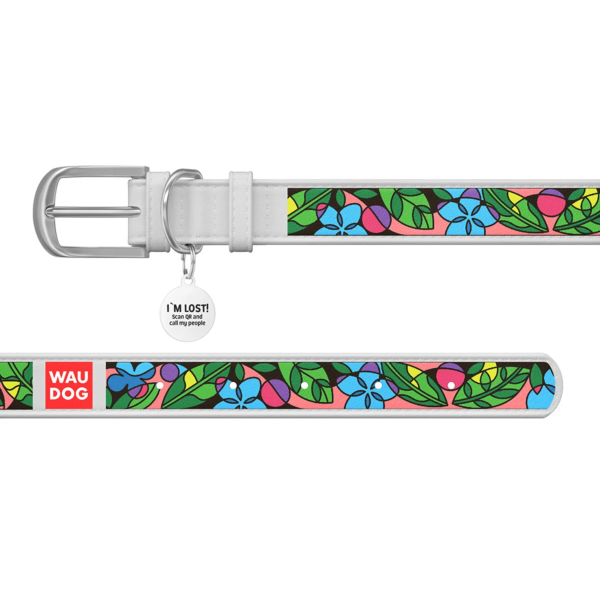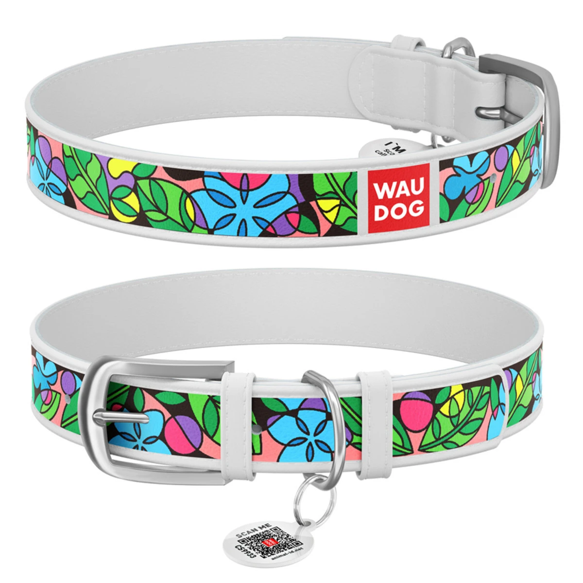 Нашийник WAUDOG Design з малюнком "Емаль", преміум шкіра, металевий пряжка (ширина 35 мм, довжина 46-60 см), білий