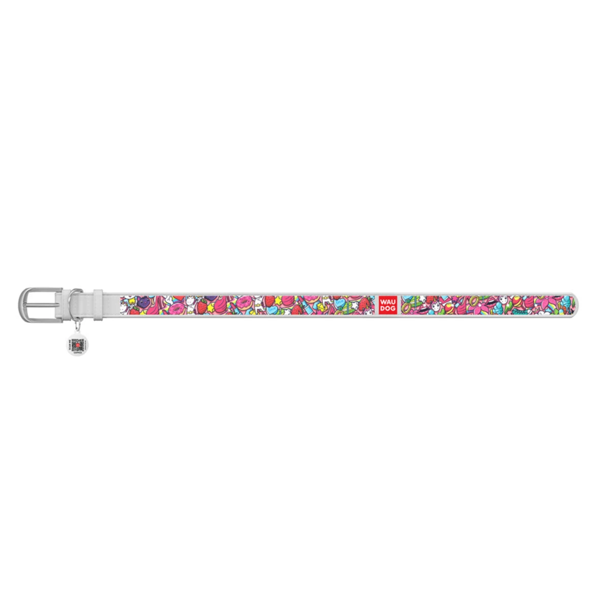 Нашийник WAUDOG Design з малюнком "Фантазія", преміум шкіра, металевий пряжка (ширина 12 мм, довжина 19-25 см), білий