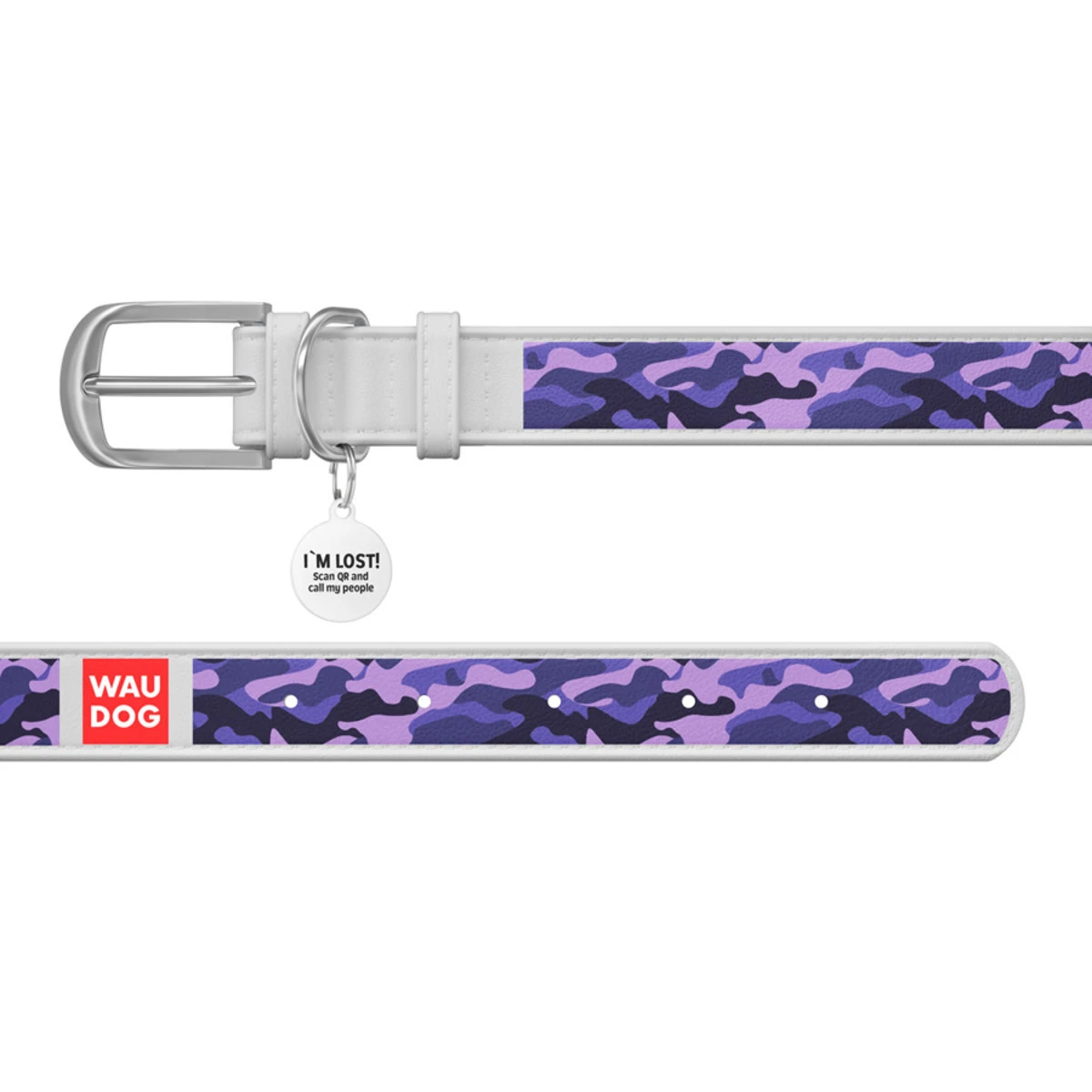 Нашийник WAUDOG Design з малюнком "Фіолетовий камо", преміум шкіра, металевий пряжка (ширина 25 мм, довжина 38-49 см), білий