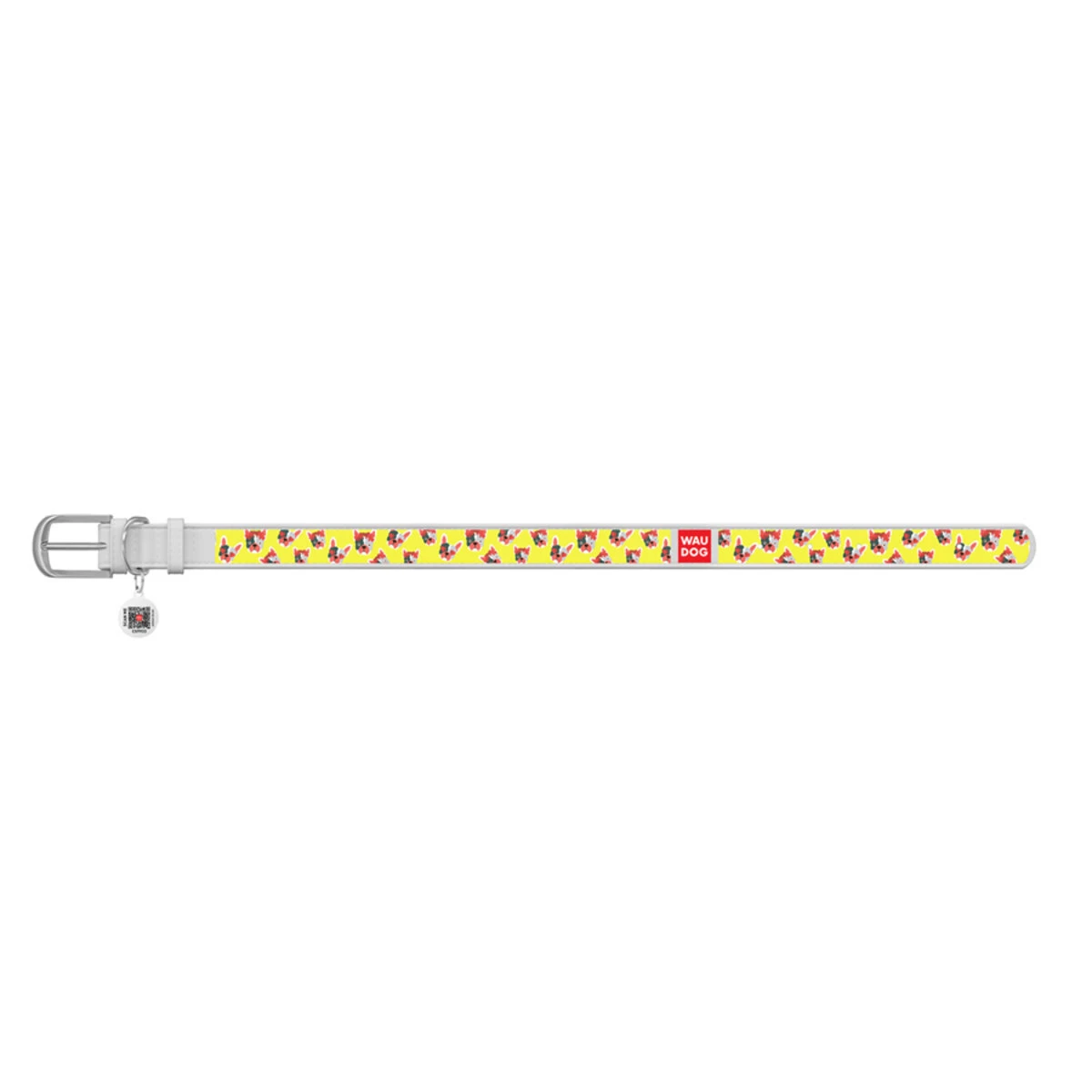 Нашийник WAUDOG Design з малюнком "Француз", преміум шкіра, металевий пряжка (ширина 15 мм, довжина 27-36 см), білий