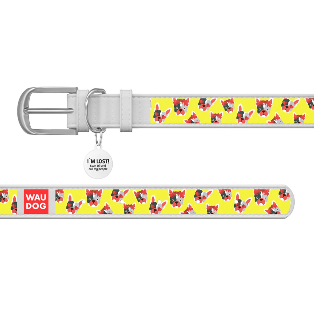 Нашийник WAUDOG Design з малюнком "Француз", преміум шкіра, металевий пряжка (ширина 35 мм, довжина 46-60 см), білий