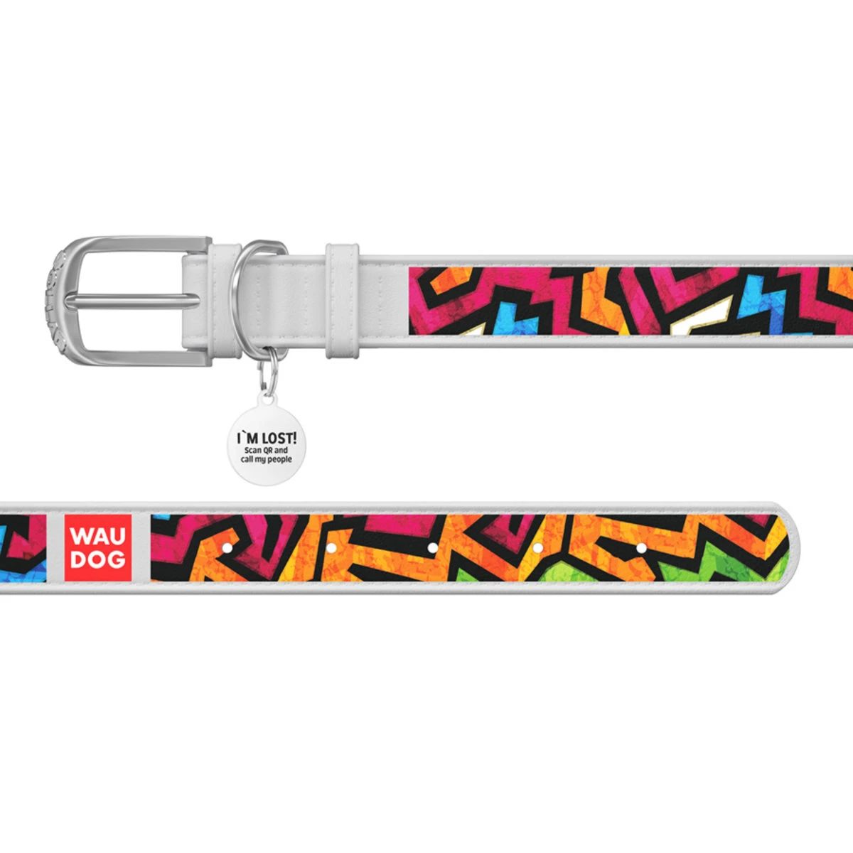 Нашийник WAUDOG Design з малюнком "Графіті", преміум шкіра, металевий пряжка (ширина 25 мм, довжина 38-49 см), білий