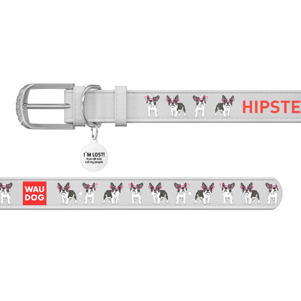 Нашийник WAUDOG Design з малюнком "Хіпстер", преміум шкіра, металевий пряжка (ширина 12 мм, довжина 21-29 см), білий