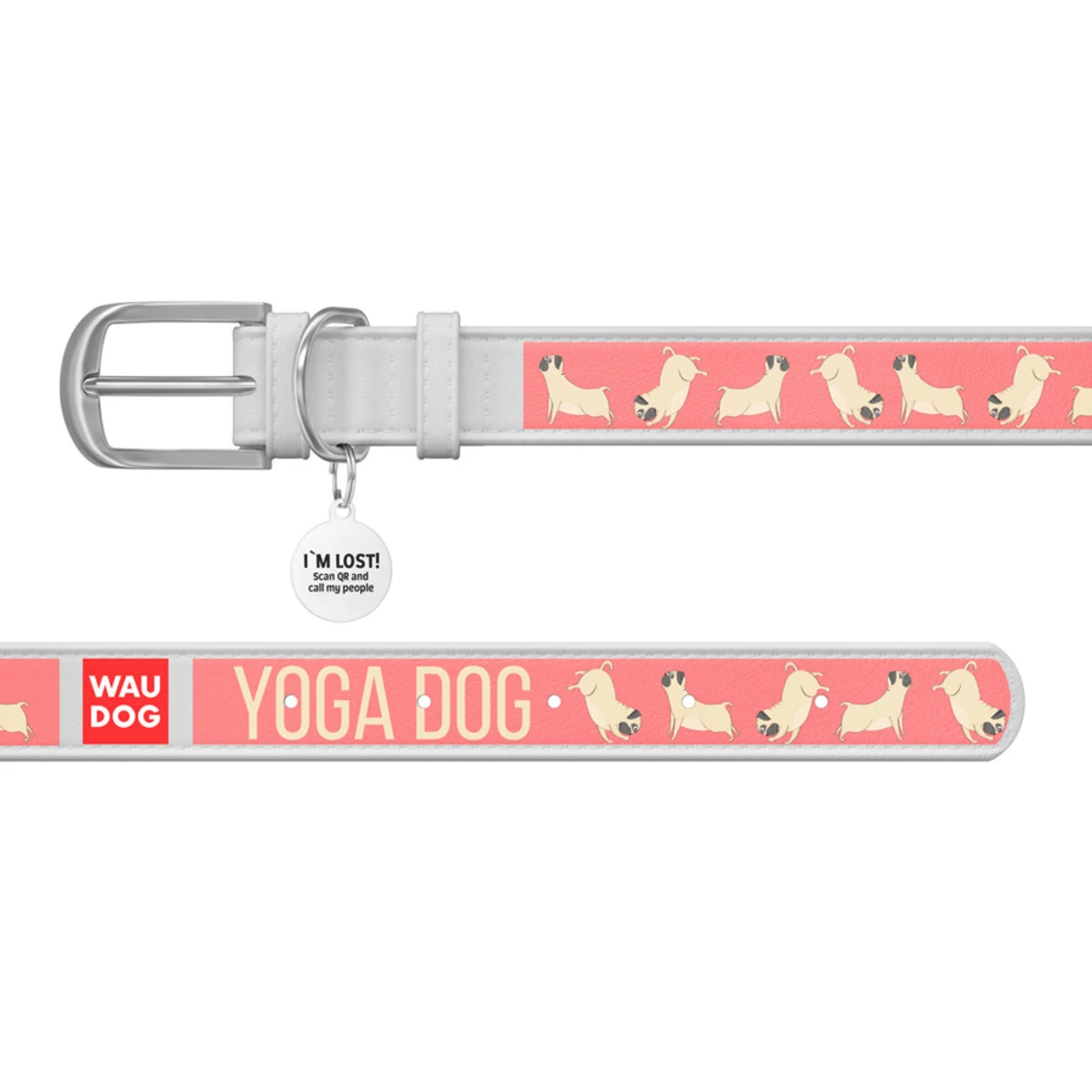Нашийник WAUDOG Design з малюнком "Йога-собака", преміум шкіра, металевий пряжка (ширина 12 мм, довжина 19-25 см), білий