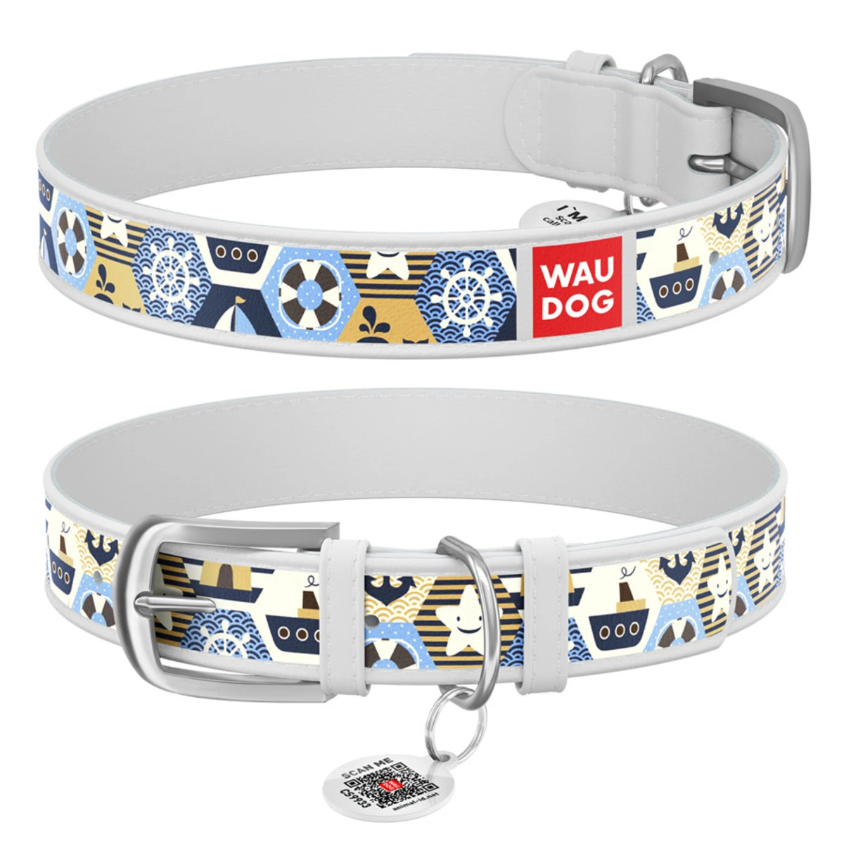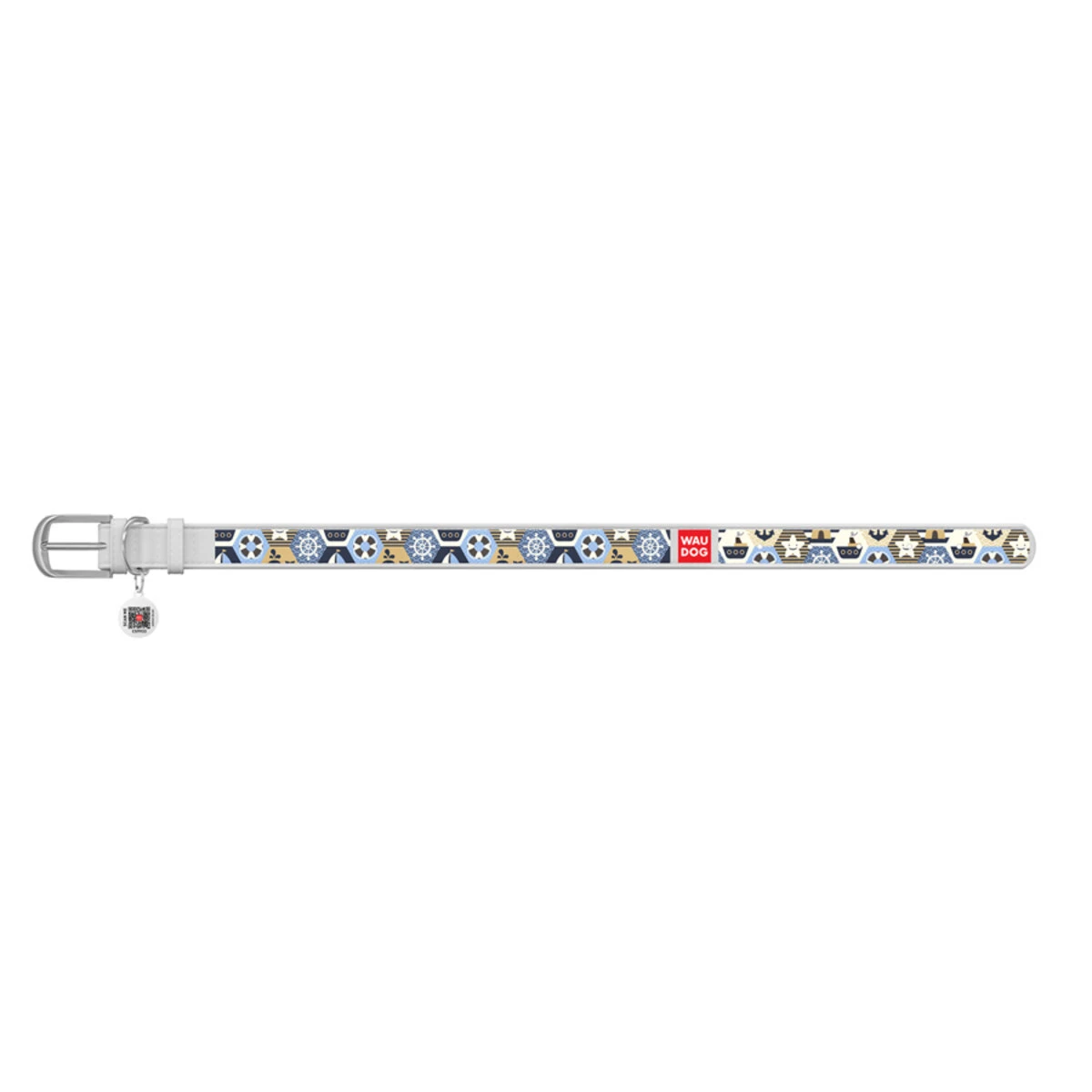 Нашийник WAUDOG Design з малюнком "Капітан", преміум шкіра, металевий пряжка (ширина 12 мм, довжина 19-25 см), білий