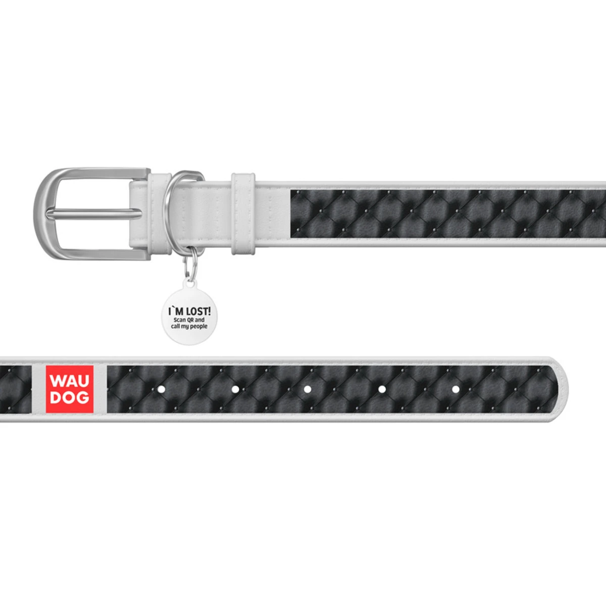 Нашийник WAUDOG Design з малюнком "Капітоне", преміум шкіра, металевий пряжка (ширина 12 мм, довжина 21-29 см), білий