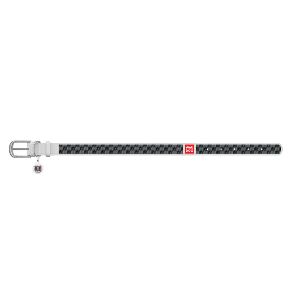 Нашийник WAUDOG Design з малюнком "Капітоне", преміум шкіра, металевий пряжка (ширина 25 мм, довжина 38-49 см), білий