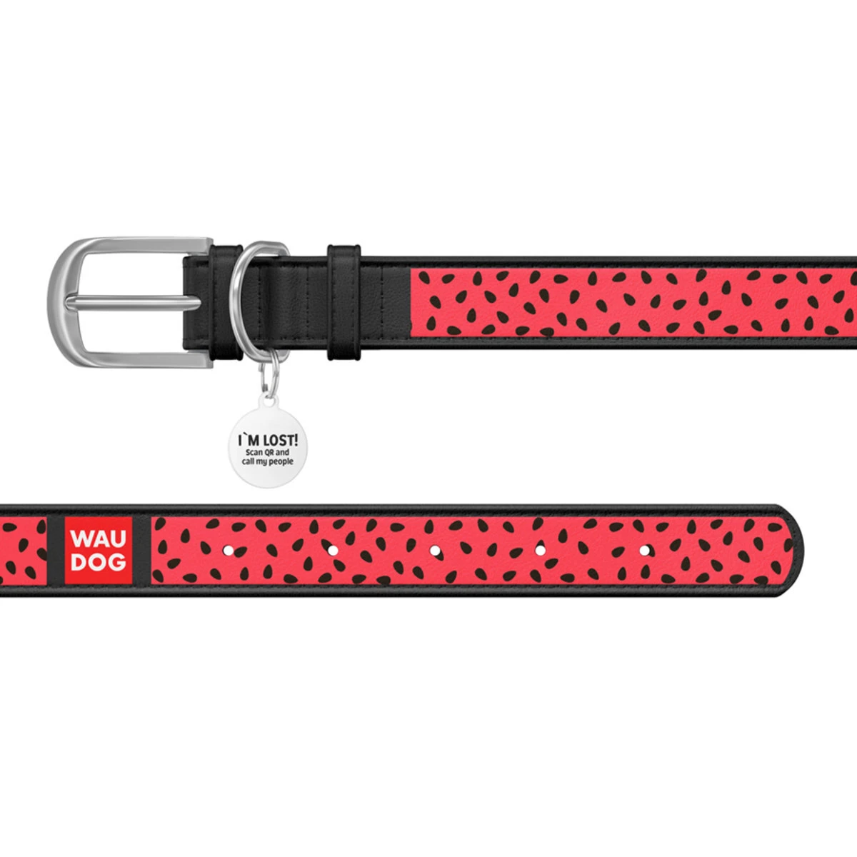 Нашийник WAUDOG Design з малюнком "Кавун", преміум шкіра, металевий пряжка (ширина 15 мм, довжина 27-36 см), чорний