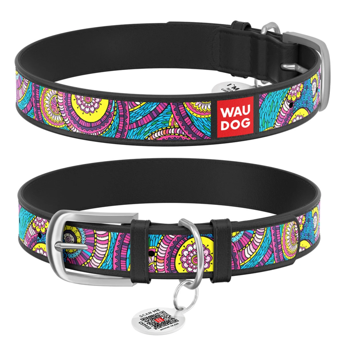 Нашийник WAUDOG Design з малюнком "Казка", преміум шкіра, металевий пряжка (ширина 20 мм, довжина 30-39 см), чорний
