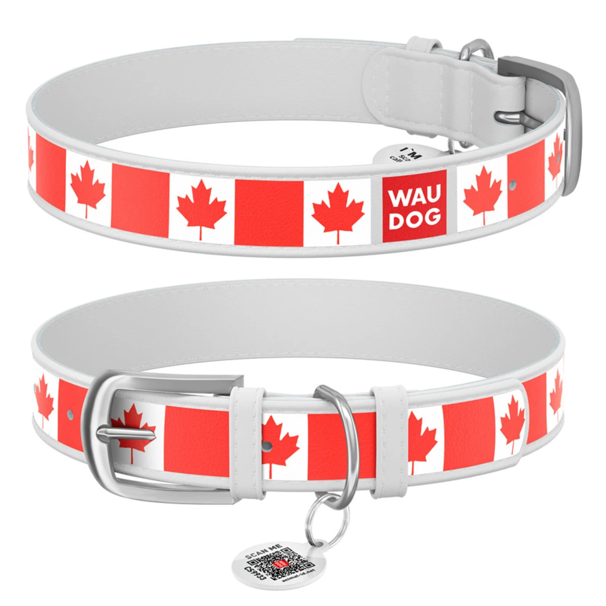 Нашийник WAUDOG Design з малюнком "Кленовий лист", преміум шкіра, металевий пряжка (ширина 15 мм, довжина 27-36 см), білий