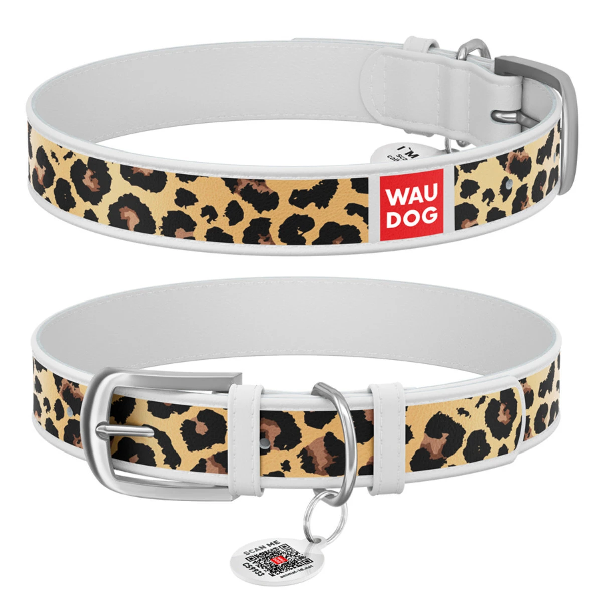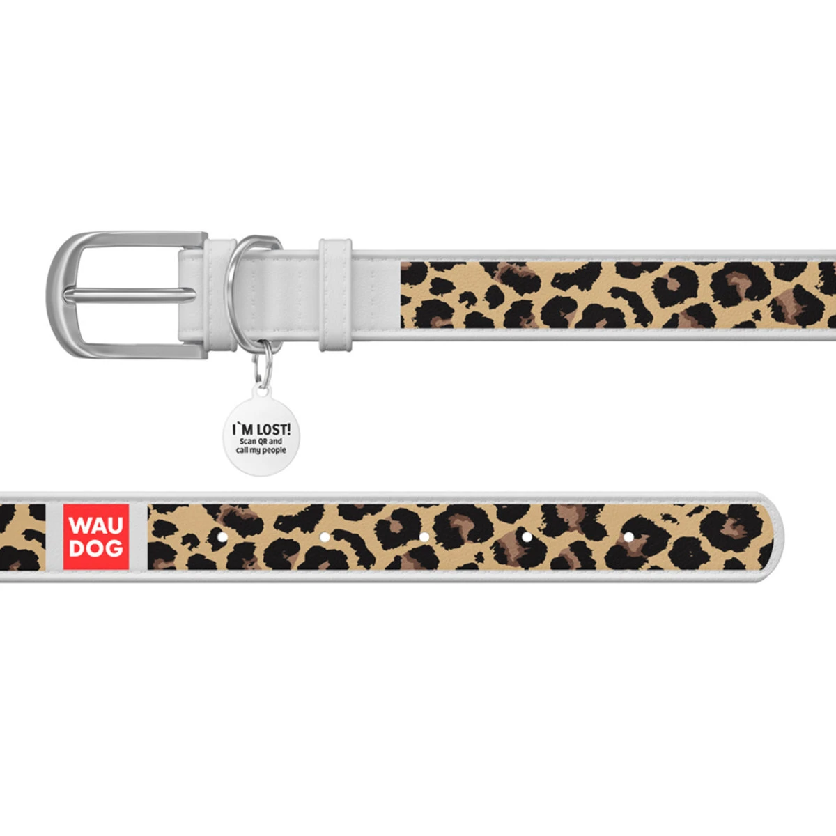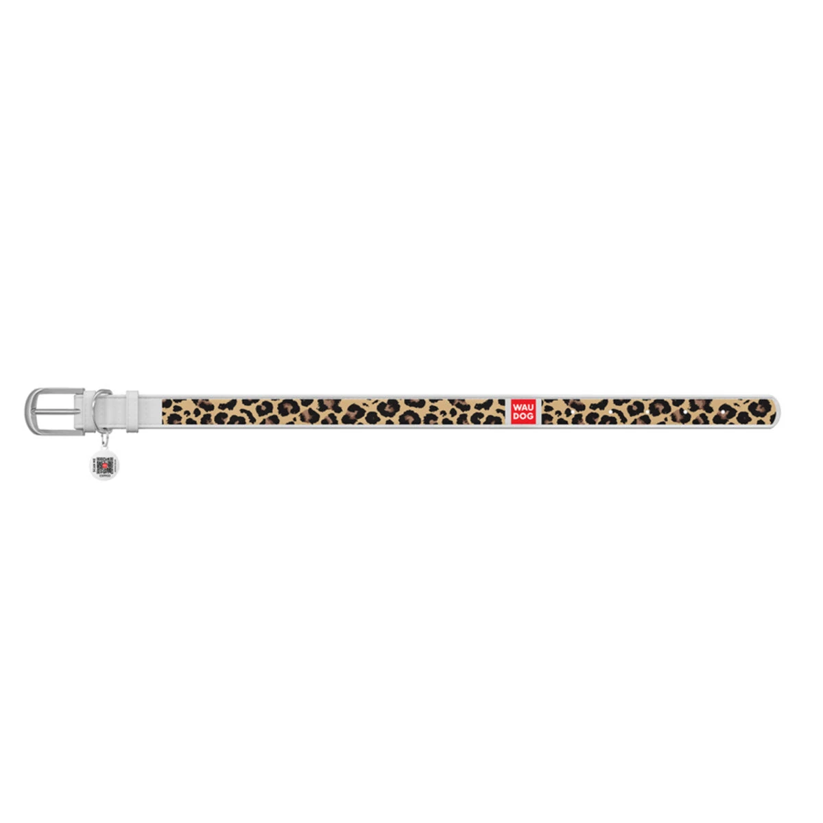 Нашийник WAUDOG Design з малюнком "Леопард", преміум шкіра, металевий затискач (ширина 25 мм, довжина 38-49 см), білий