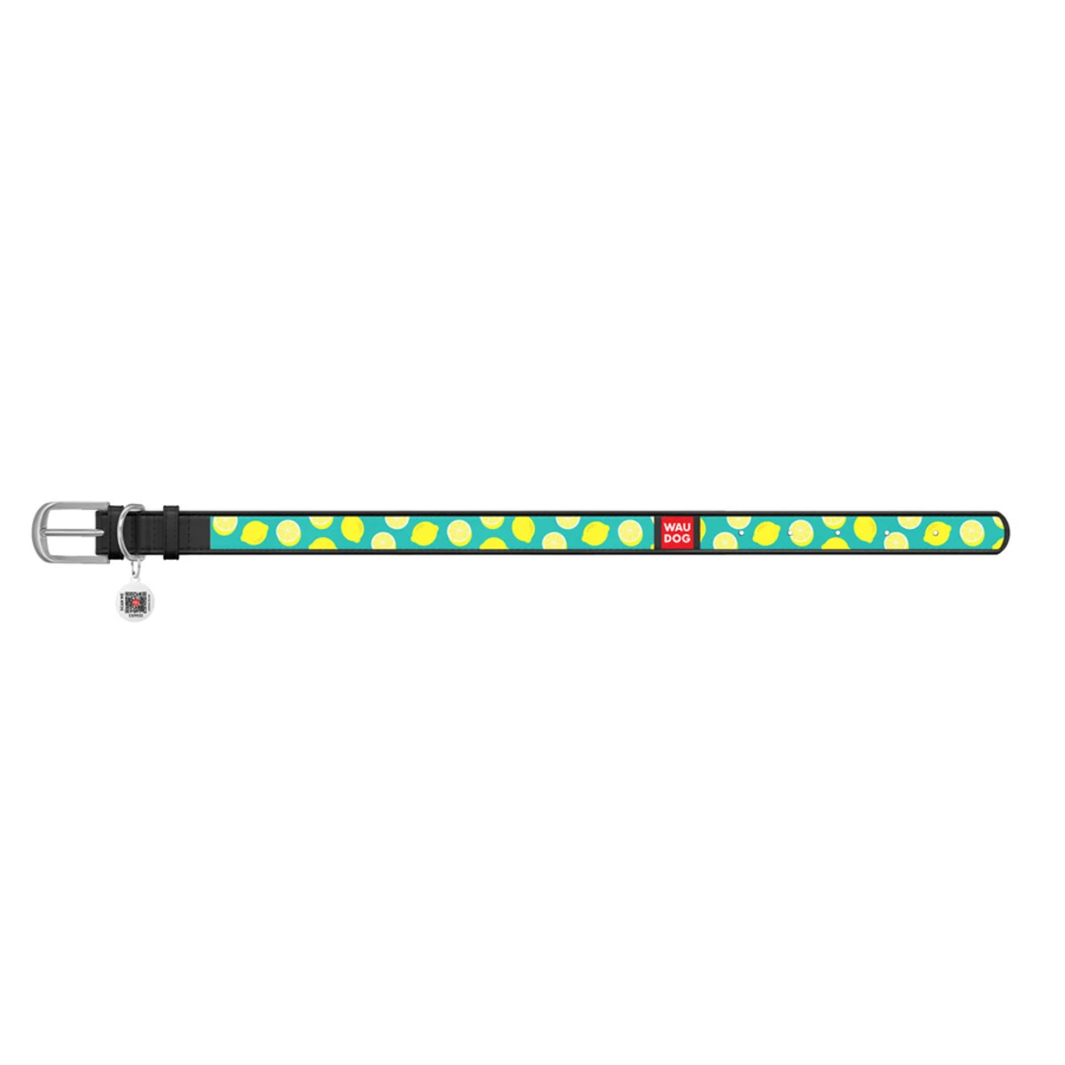 Нашийник WAUDOG Design з малюнком "Лимони", преміум шкіра, металевий пряжка (ширина 12 мм, довжина 19-25 см), чорний