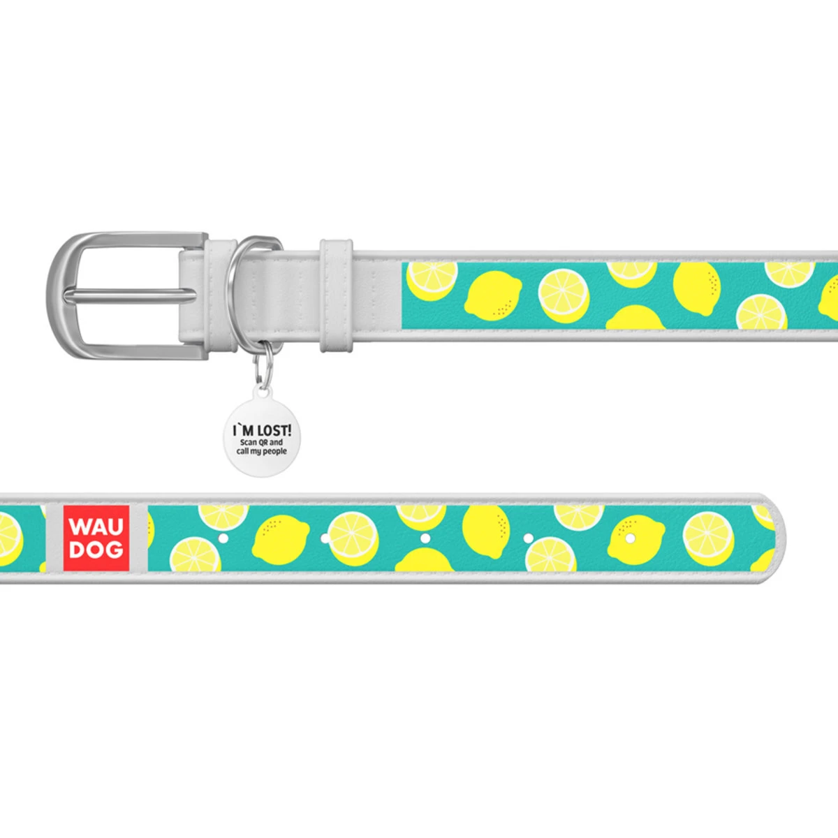 Нашийник WAUDOG Design з малюнком "Лимони", преміум шкіра, металевий пряжка (ширина 15 мм, довжина 27-36 см), білий