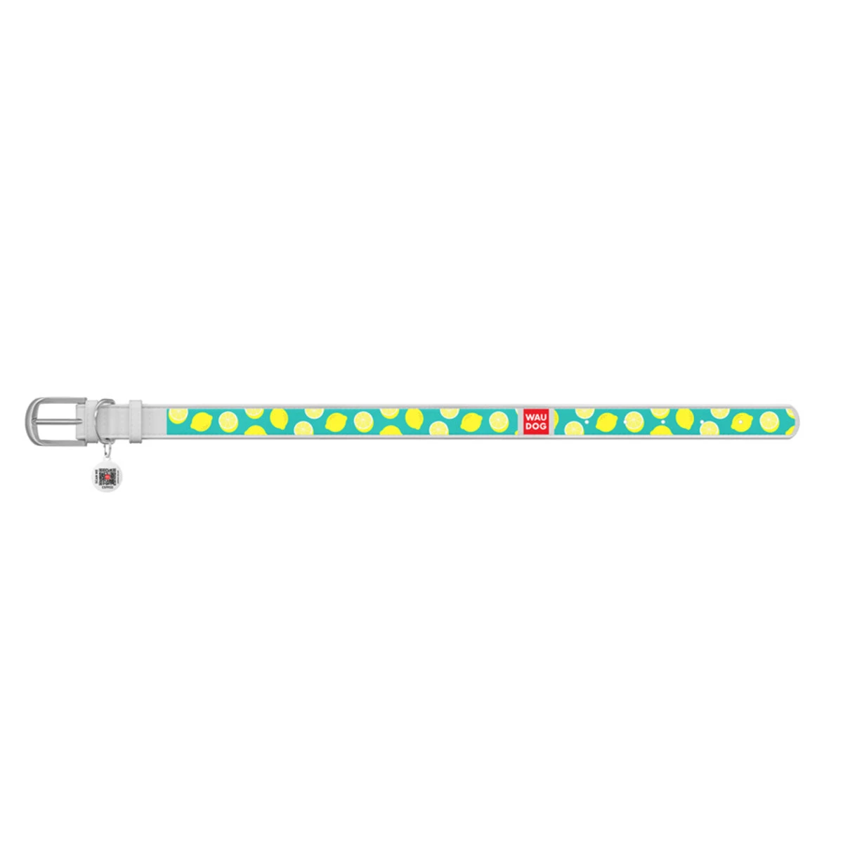Нашийник WAUDOG Design з малюнком "Лимони", преміум шкіра, металевий пряжка (ширина 35 мм, довжина 46-60 см), білий
