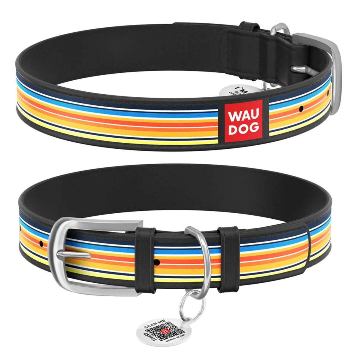 Нашийник WAUDOG Design з малюнком "Лінії 2", преміум шкіра, металевий пряжка (ширина 25 мм, довжина 38-49 см), чорний