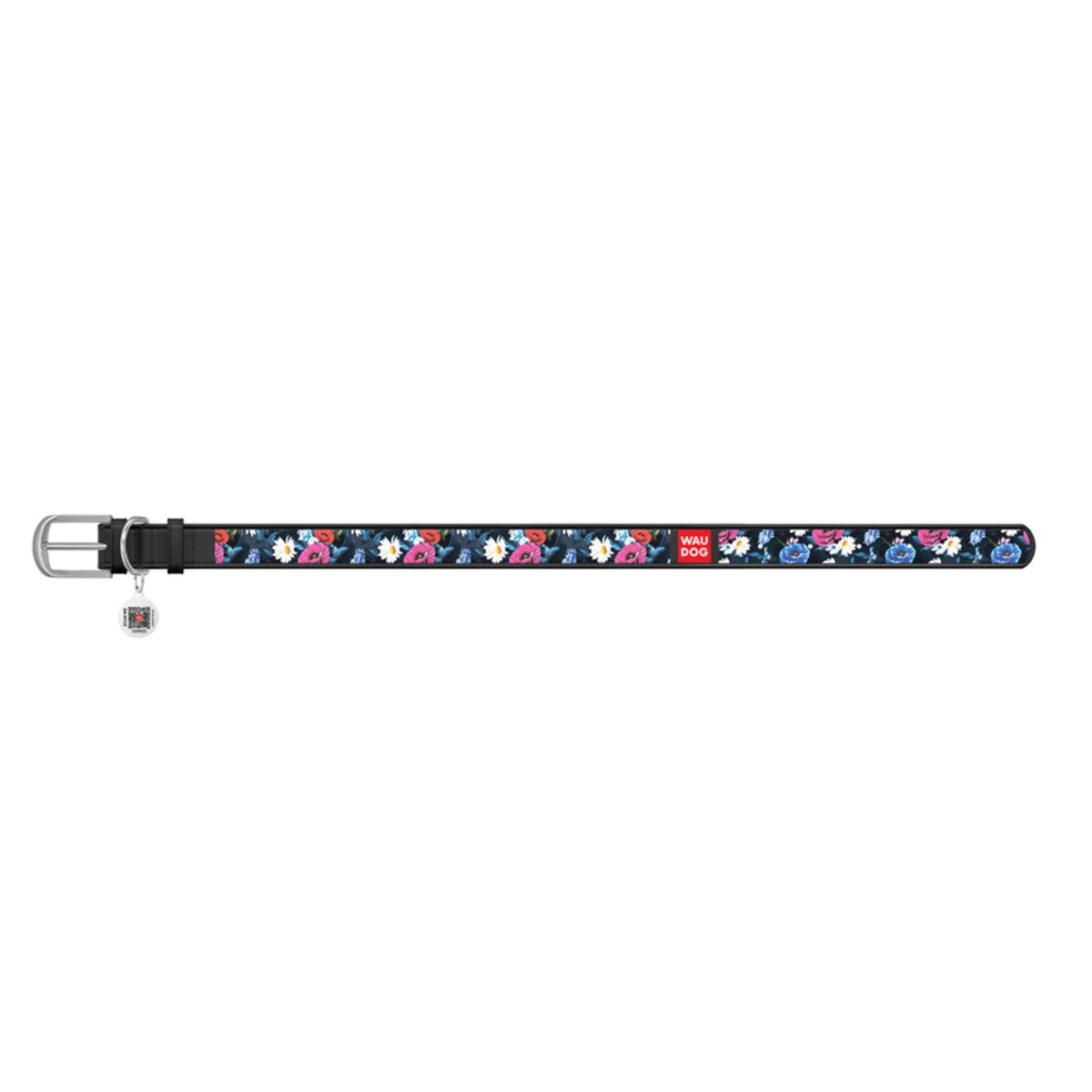 Нашийник WAUDOG Design з малюнком "Літнє луго", преміум шкіра, металевий пряжка (ширина 35 мм, довжина 46-60 см), чорний