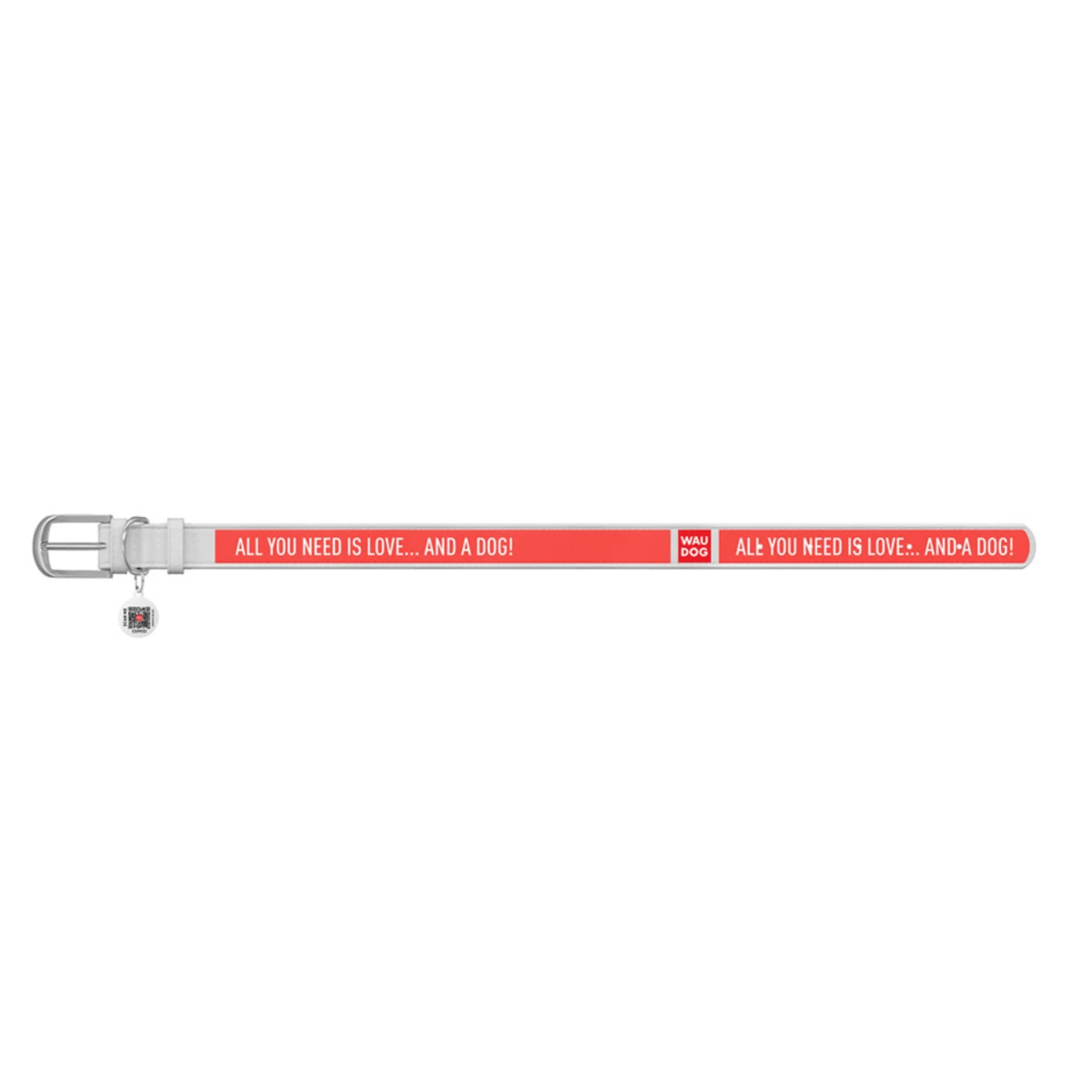 Нашийник WAUDOG Design з малюнком "Любов і собаки", преміум шкіра, металевий пряжка (ширина 15 мм, довжина 27-36 см), білий