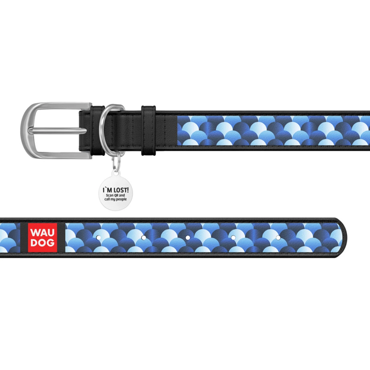 Нашийник WAUDOG Design з малюнком "Луска", преміум шкіра, металевий затискач (ширина 25 мм, довжина 38-49 см), чорний