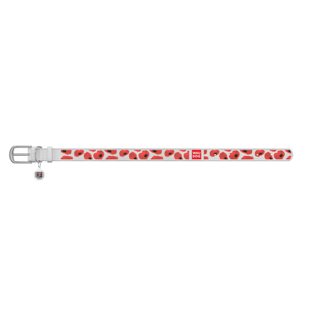 Нашийник WAUDOG Design з малюнком "Макі", преміум шкіра, металевий пряжка (ширина 20 мм, довжина 30-39 см), білий