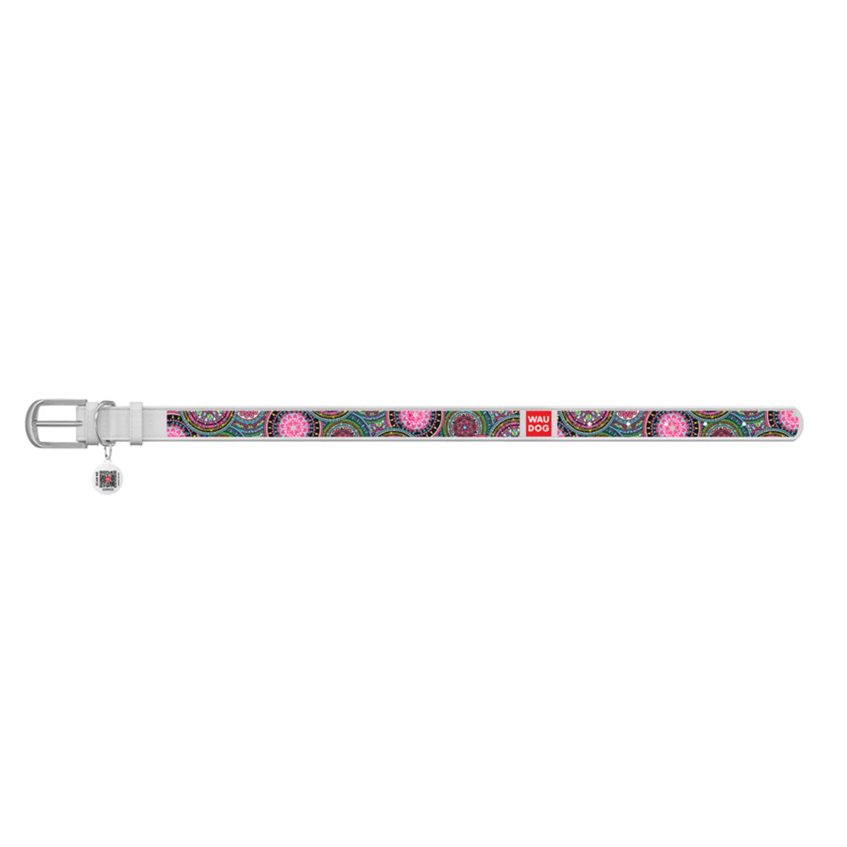 Нашийник WAUDOG Design з малюнком "Мандали", преміум шкіра, металевий пряжка (ширина 35 мм, довжина 46-60 см), білий