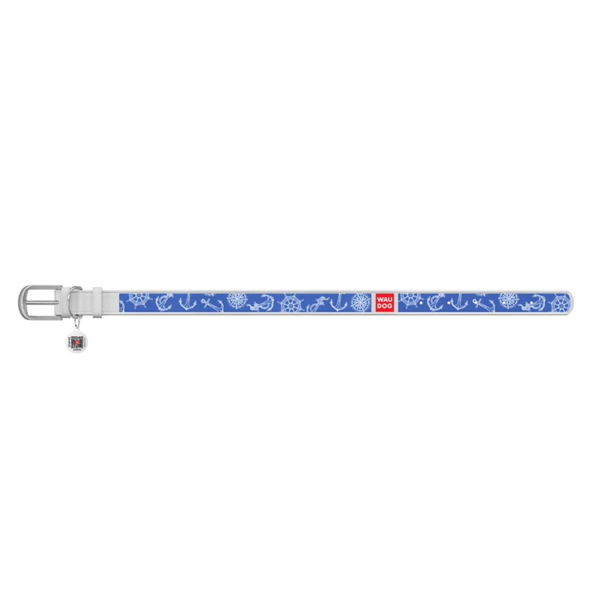 Нашийник WAUDOG Design з малюнком "Морська фантазія", преміум шкіра, металевий пряжка (ширина 35 мм, довжина 46-60 см), білий