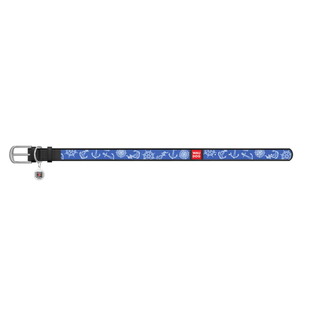 Нашийник WAUDOG Design з малюнком "Морська фантазія", преміум шкіра, металевий пряжка (ширина 35 мм, довжина 46-60 см), чорний