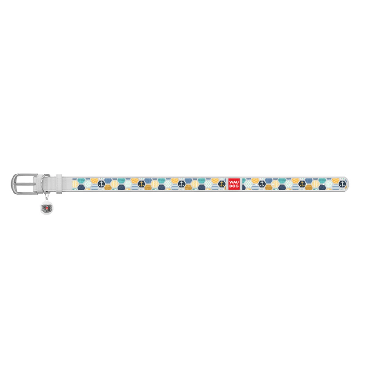 Нашийник WAUDOG Design з малюнком "Морський 2", преміум шкіра, металевий пряжка (ширина 25 мм, довжина 38-49 см), білий