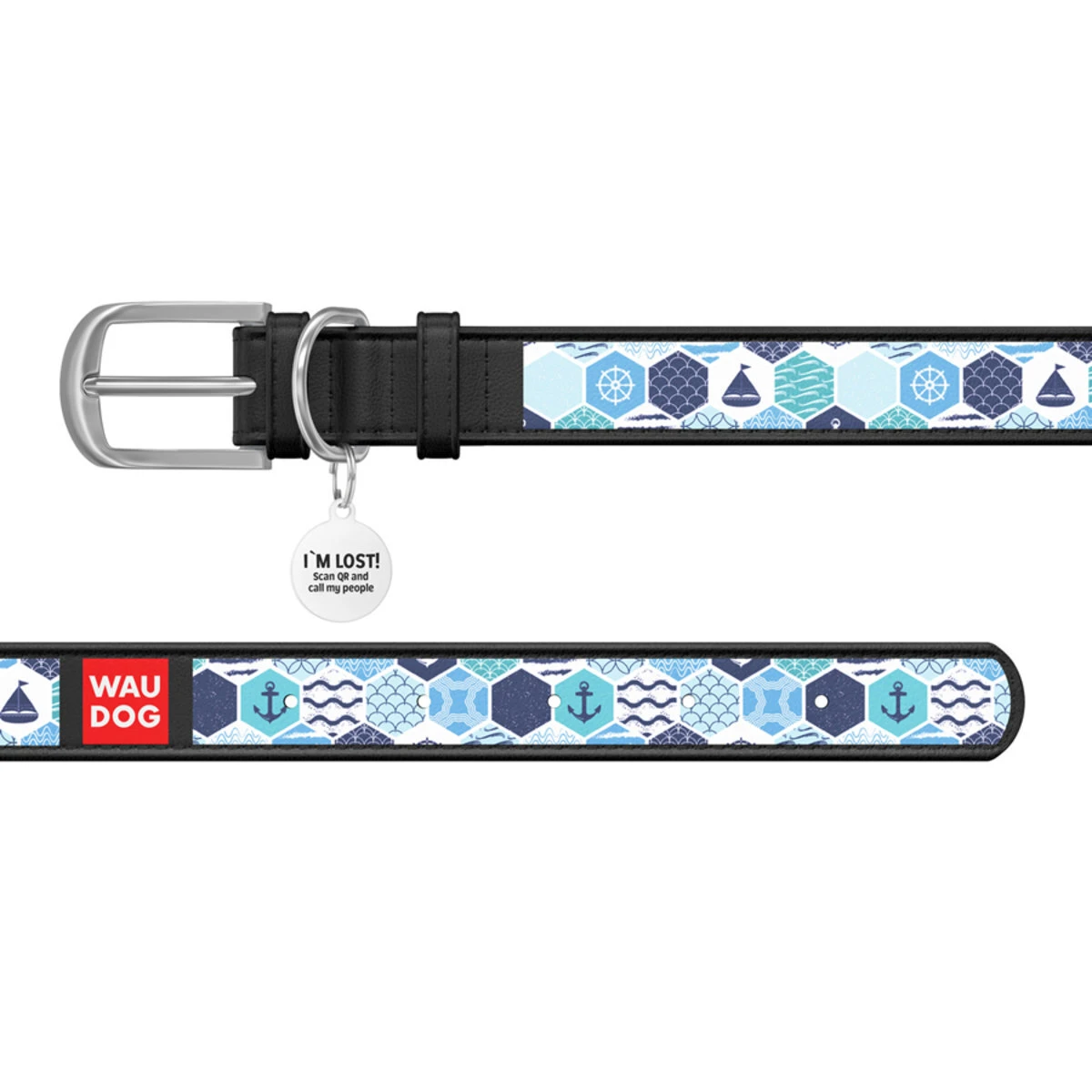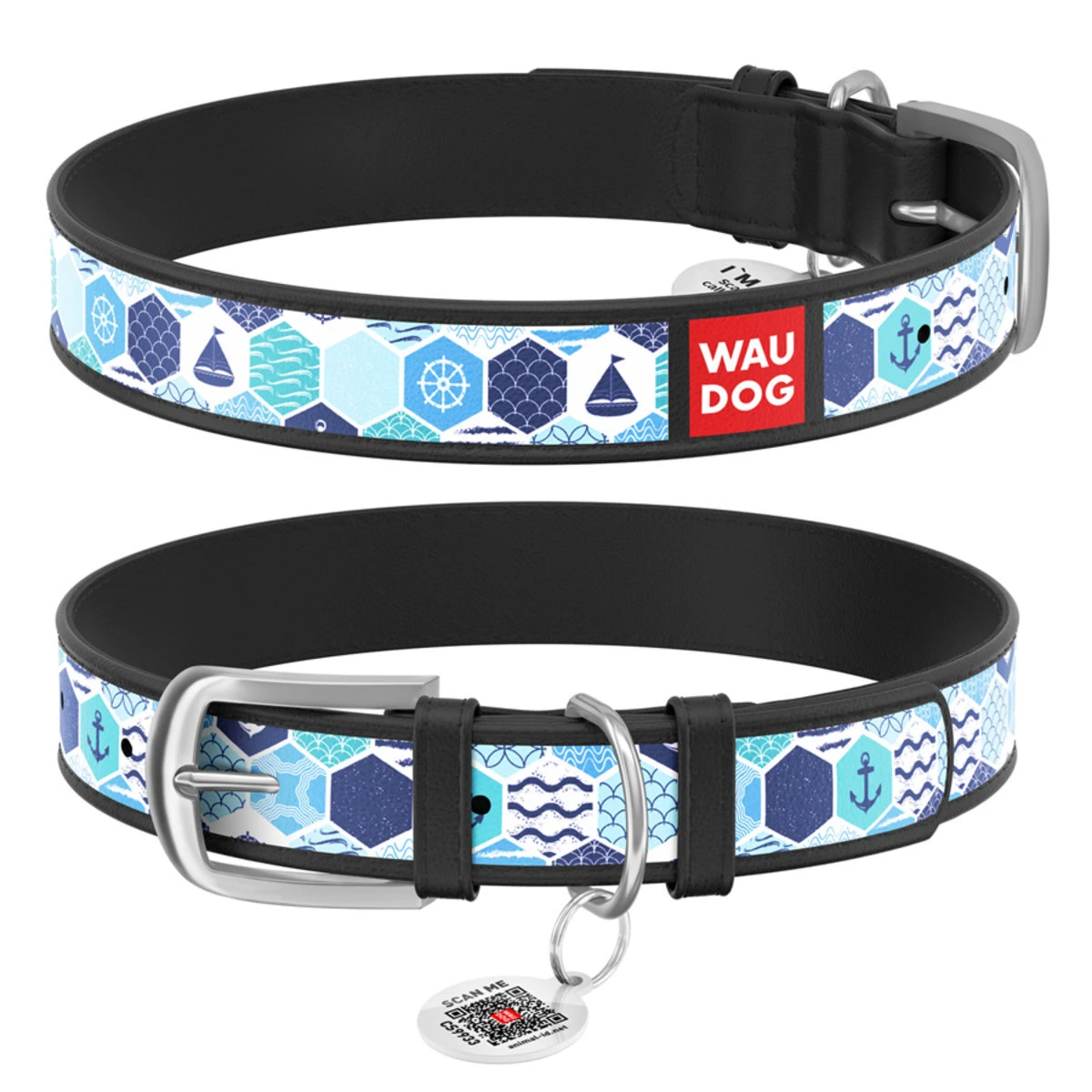 Нашийник WAUDOG Design з малюнком "Морський", преміум шкіра, металевий пряжка (ширина 20 мм, довжина 30-39 см), чорний