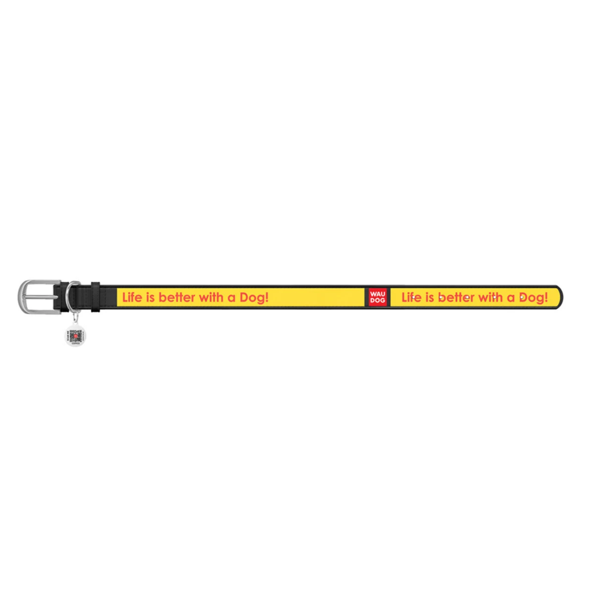 Нашийник WAUDOG Design з малюнком "Найкраще життя", преміум шкіра, металевий пряжка (ширина 20 мм, довжина 30-39 см), чорний