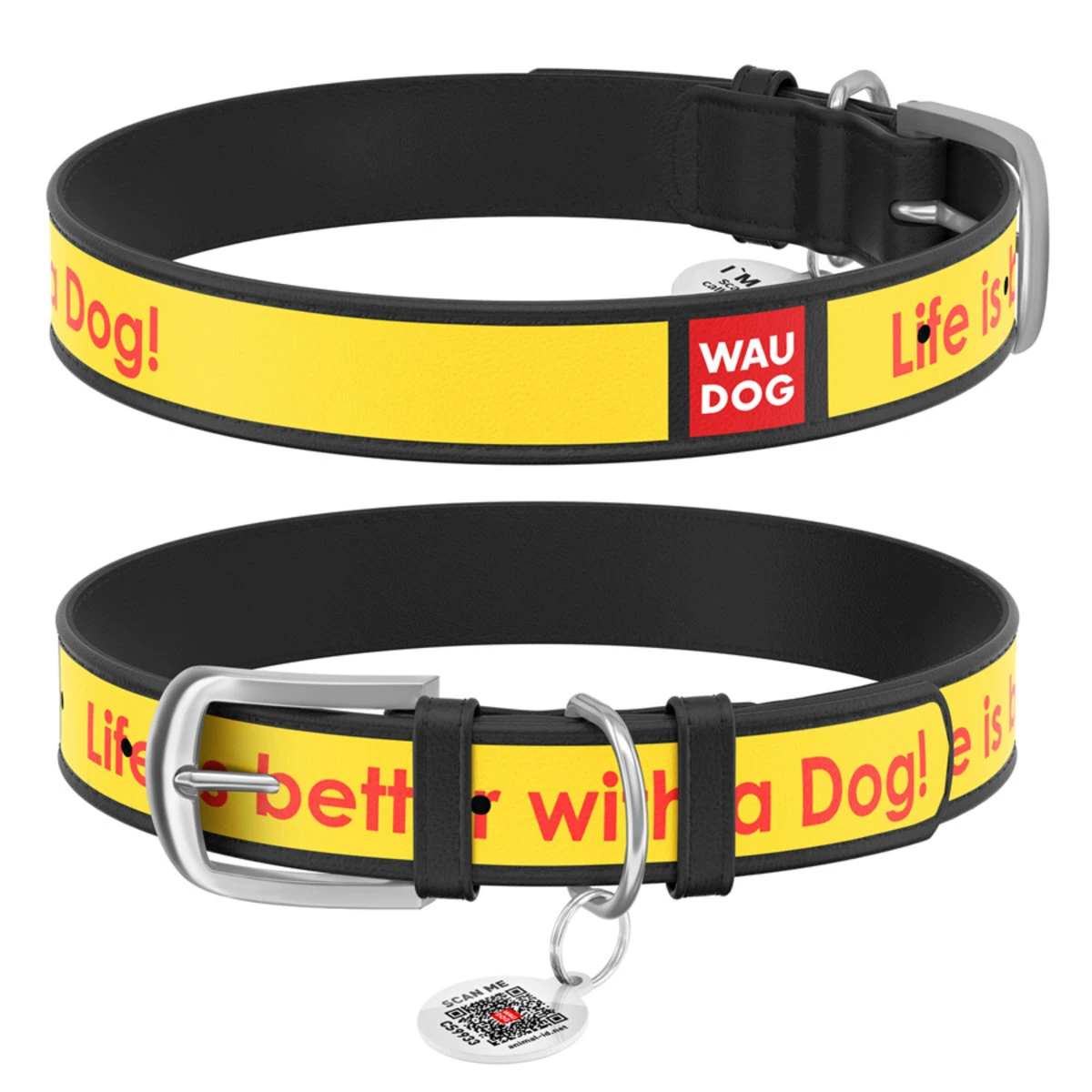 Нашийник WAUDOG Design з малюнком "Найкраще життя", преміум шкіра, металевий пряжка (ширина 35 мм, довжина 46-60 см), чорний