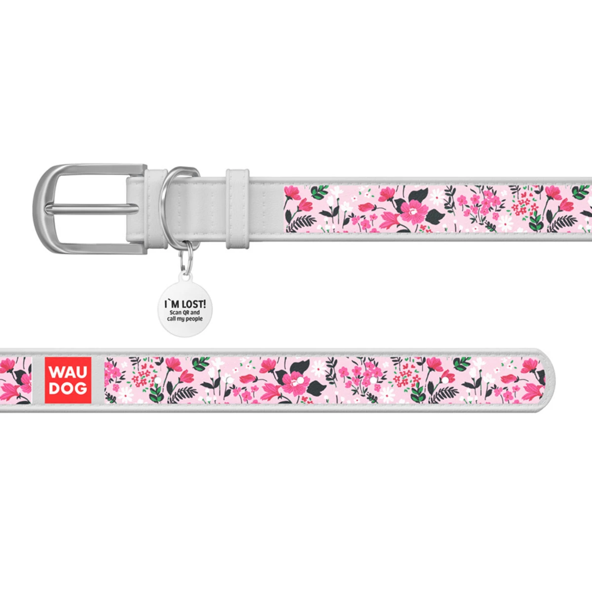 Нашийник WAUDOG Design з малюнком "Ніжність", преміум шкіра, металевий пряжка (ширина 25 мм, довжина 38-49 см), білий