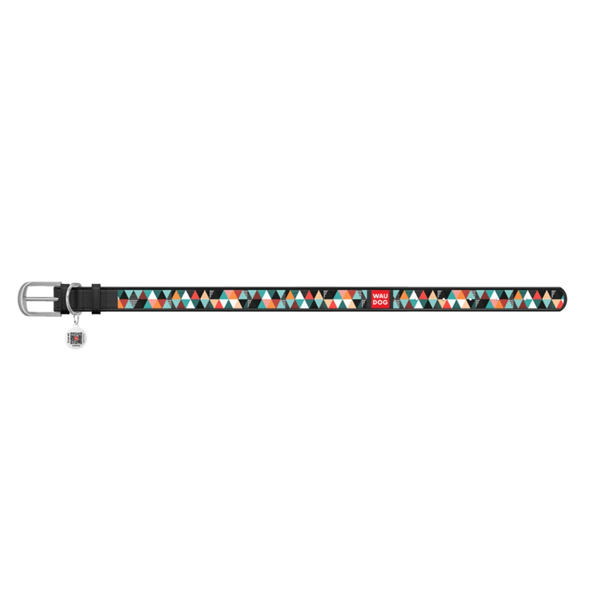 Нашийник WAUDOG Design з малюнком "Печворк 2", преміум шкіра, металевий пряжка (ширина 15 мм, довжина 27-36 см), чорний