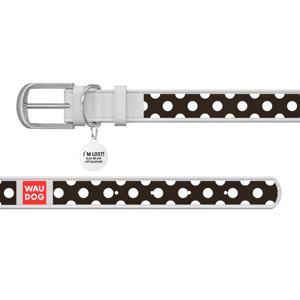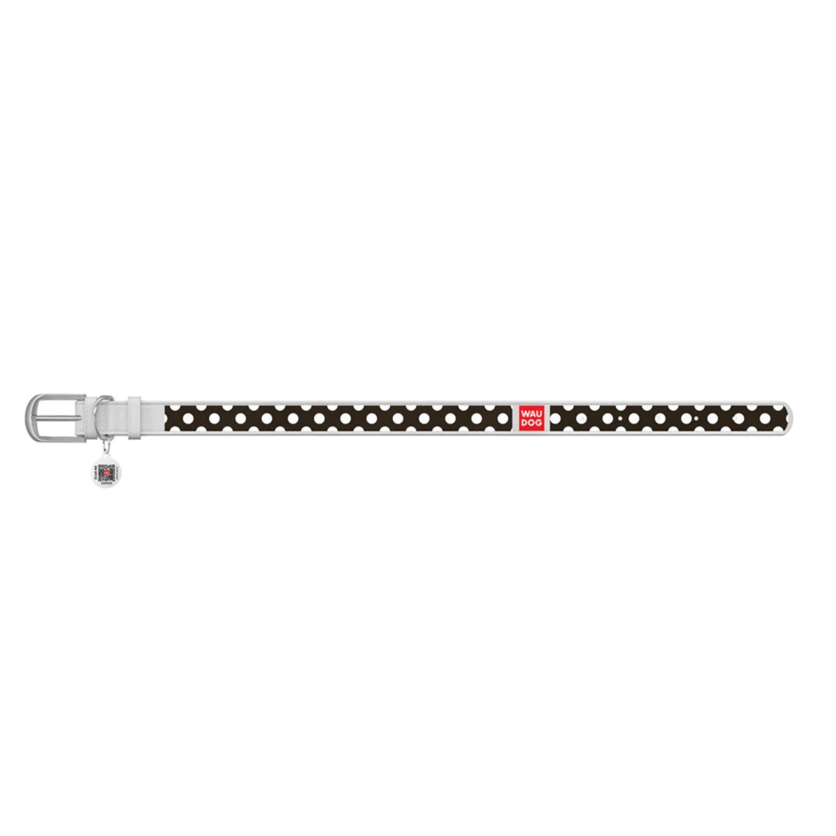 Нашийник WAUDOG Design з малюнком "Полька", преміум шкіра, металевий пряжка (ширина 25 мм, довжина 38-49 см), білий
