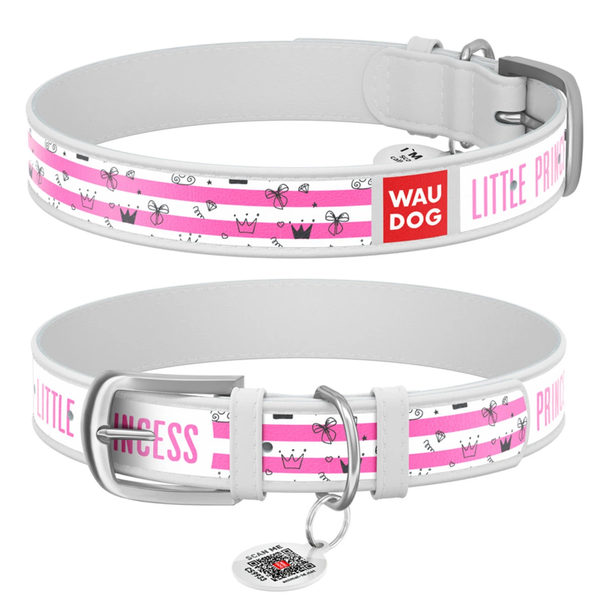 Нашийник WAUDOG Design з малюнком "Принцеса", преміум шкіра, металевий пряжка (ширина 15 мм, довжина 27-36 см), білий
