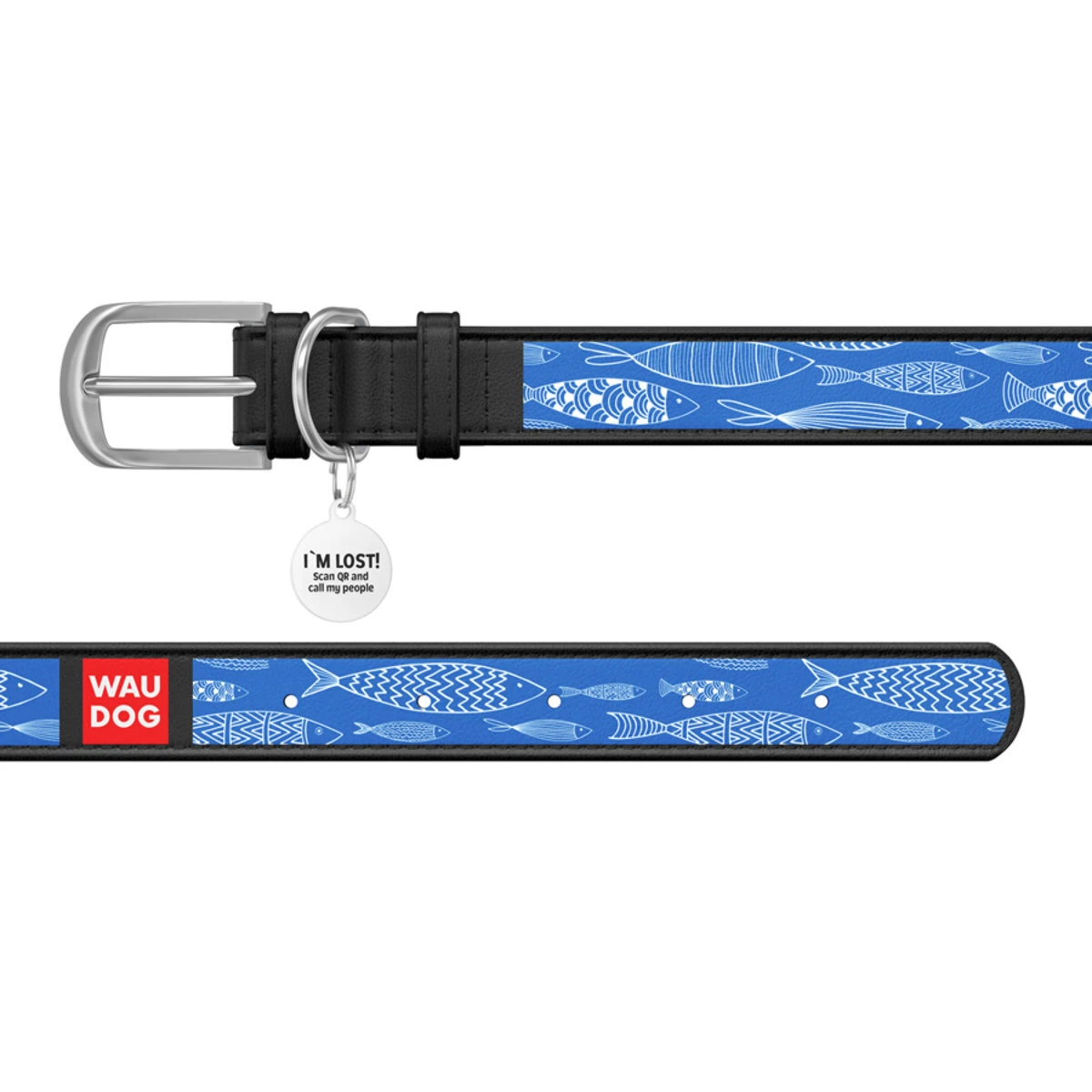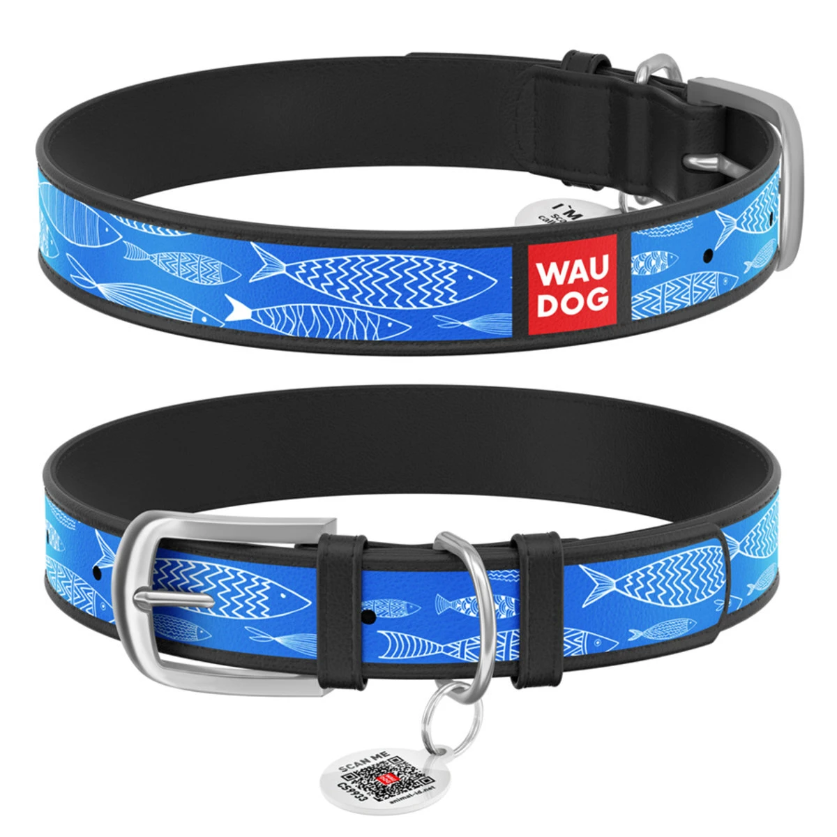 Нашийник WAUDOG Design з малюнком "Риба", преміум шкіра, металевий затискач (ширина 12 мм, довжина 19-25 см), чорний