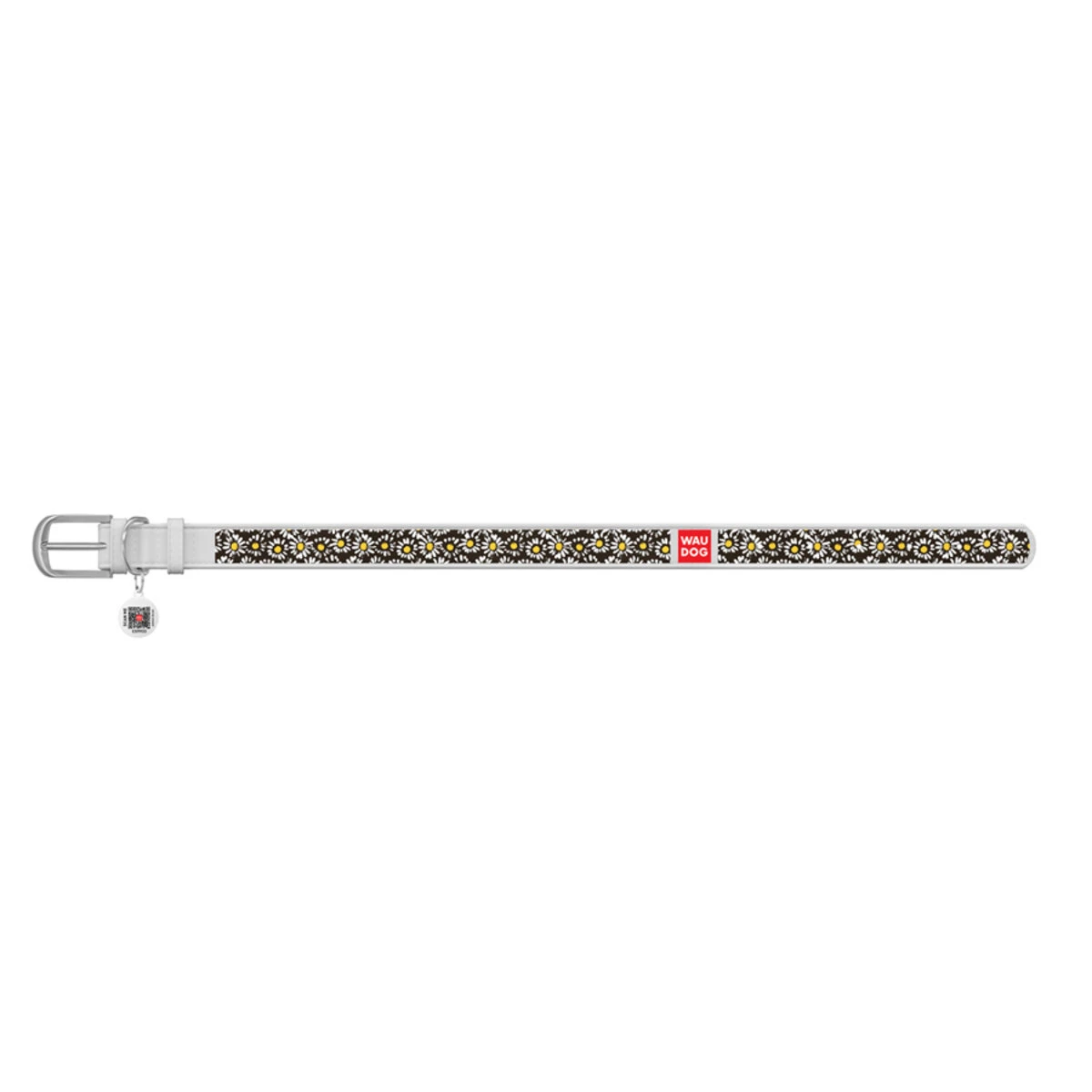 Нашийник WAUDOG Design з малюнком "Ромашки", преміум шкіра, металевий пряжка (ширина 12 мм, довжина 21-29 см), білий