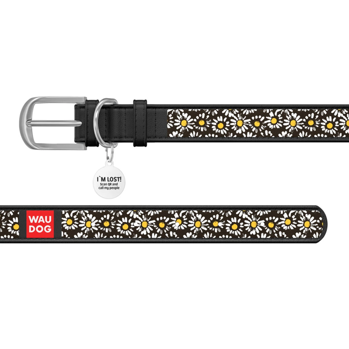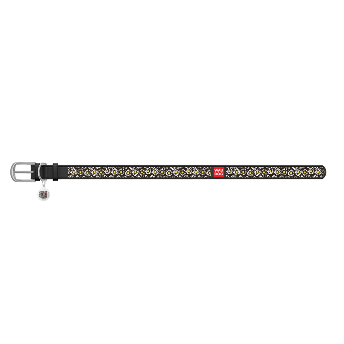 Нашийник WAUDOG Design з малюнком "Ромашки", преміум шкіра, металевий пряжка (ширина 12 мм, довжина 21-29 см), чорний