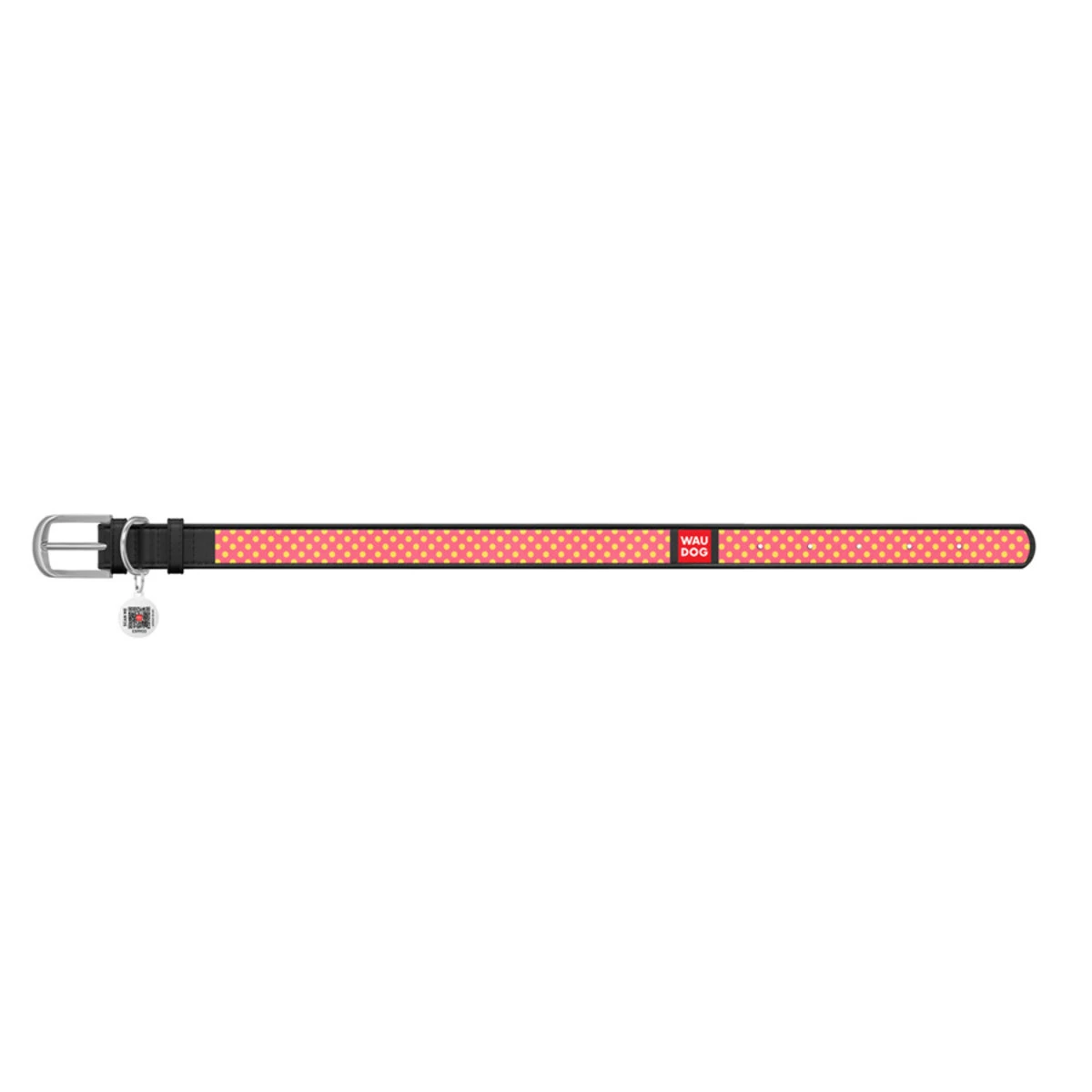 Нашийник WAUDOG Design з малюнком "Рожева полька", преміум шкіра, металевий пряжка (ширина 35 мм, довжина 46-60 см), чорний
