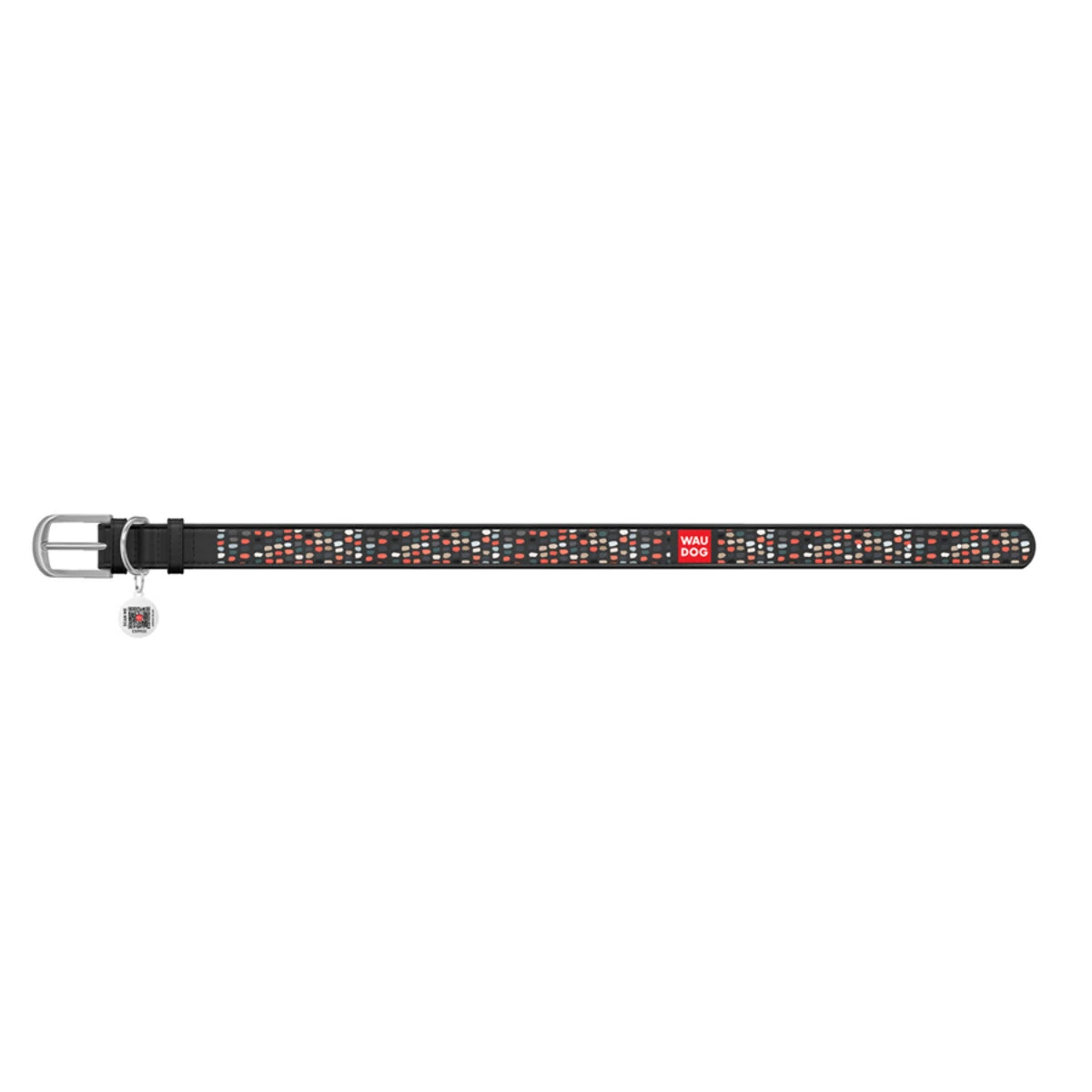 Нашийник WAUDOG Design з малюнком "Смішні точки", преміум шкіра, металевий пряжка (ширина 12 мм, довжина 19-25 см), чорний