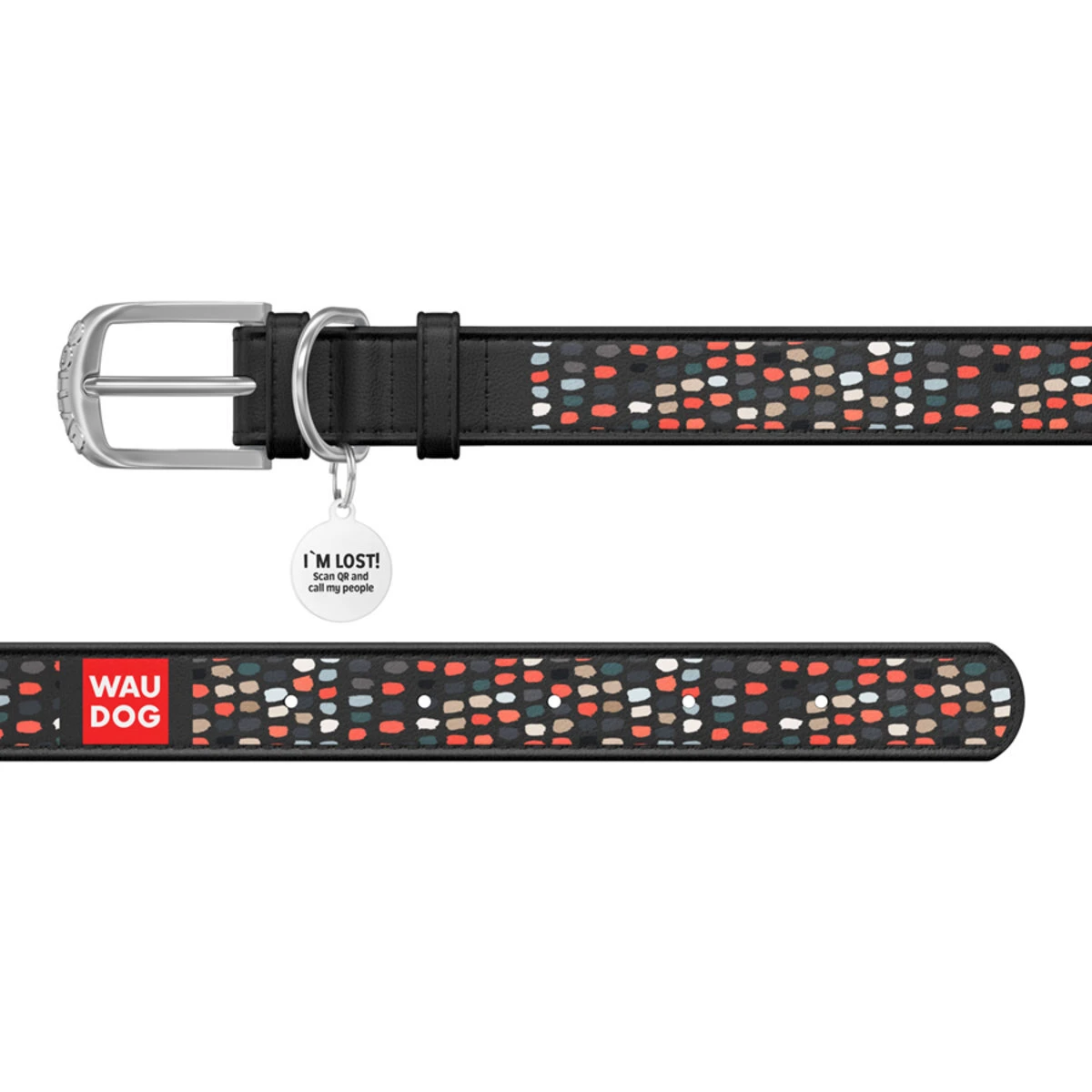 Нашийник WAUDOG Design з малюнком "Смішні точки", преміум шкіра, металевий пряжка (ширина 15 мм, довжина 27-36 см), чорний