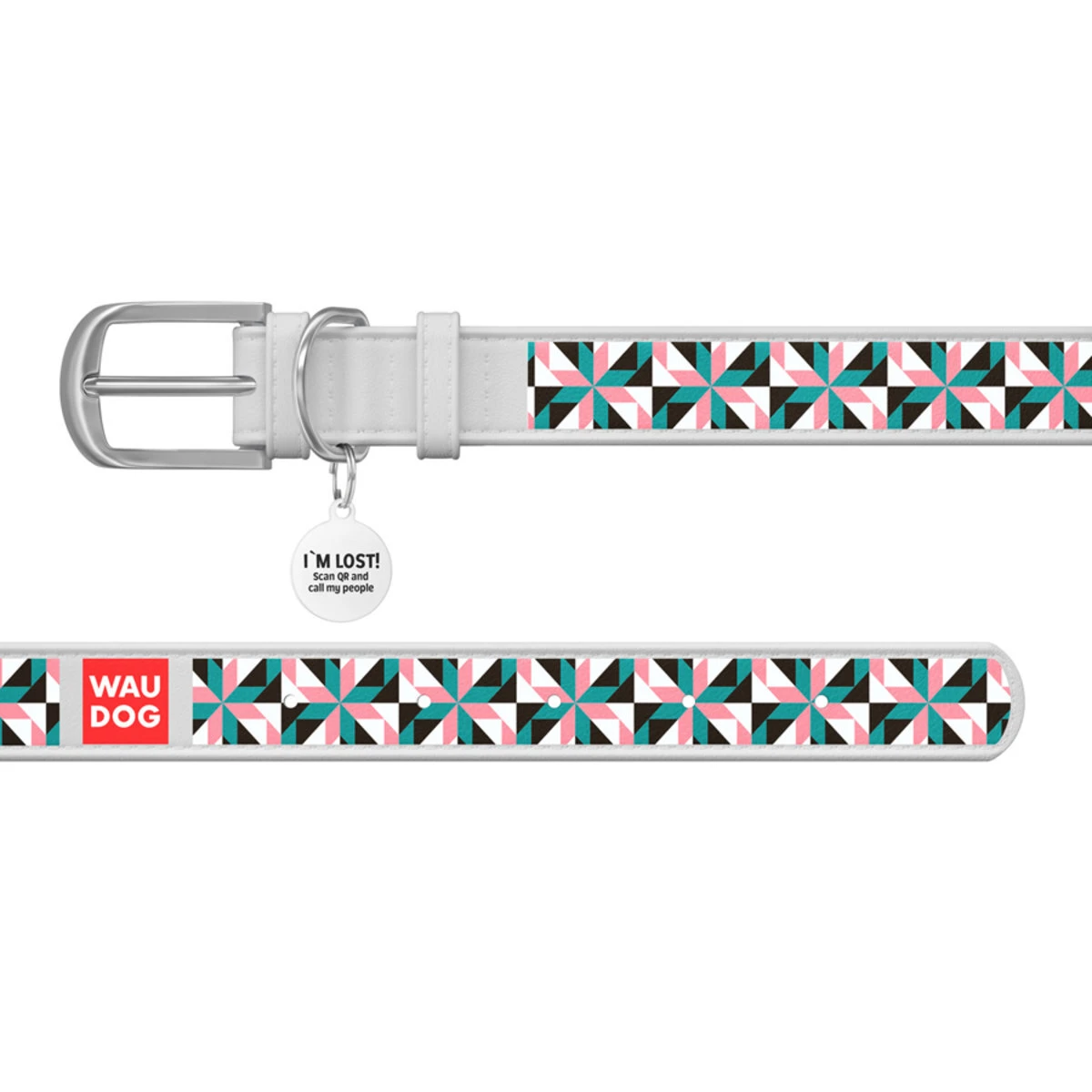 Нашийник WAUDOG Design з малюнком "Сніжні квіти", преміум шкіра, металевий пряжка (ширина 15 мм, довжина 27-36 см), білий